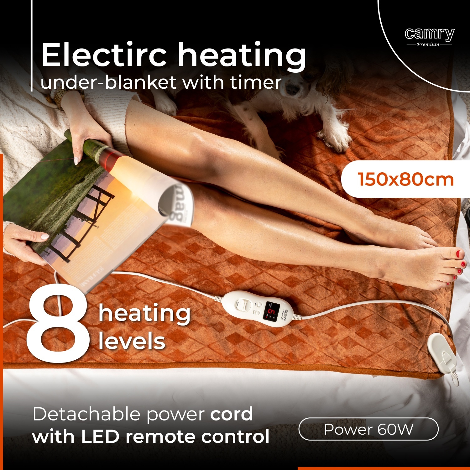 Camry CR7435 on pehme elektriline soojendustekk mõõtmetega 150×80 cm ja 8 kütterežiimiga, mis pakub meeldivat ja ühtlast soojust külmematel aastaaegadel. Tekk on mõeldud ühele inimesele ning varustatud intuitiivse LED-kontrolleri, taimeri ja ülekuumenemiskaitsega. Ülemine kiht on valmistatud väga pehmest fliisist, alumine aga vastupidavast polüestrist, tagades mugavuse, soojuse hoidmise ja pika kasutusea. Tänu eemaldatavale kaablile saab tekki ohutult pesta, mis teeb sellest ideaalse lahenduse koduseks mugavuseks ja igapäevaseks lõõgastuseks.
