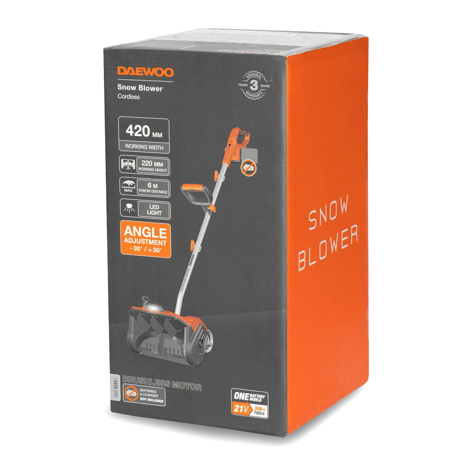 DAEWOO DAST 4242Li on tõhus ja kerge akuga lumepuhur, mis sobib ideaalselt talveprobleemide lahendamiseks. Selle 42 cm puhastuslaius ja 22 cm tõste kõrgus muudavad lumetõrje kiireks ja mugavaks, võimaldades efektiivset töötlemist ja lumelaadimise ulatust 1-6 m.