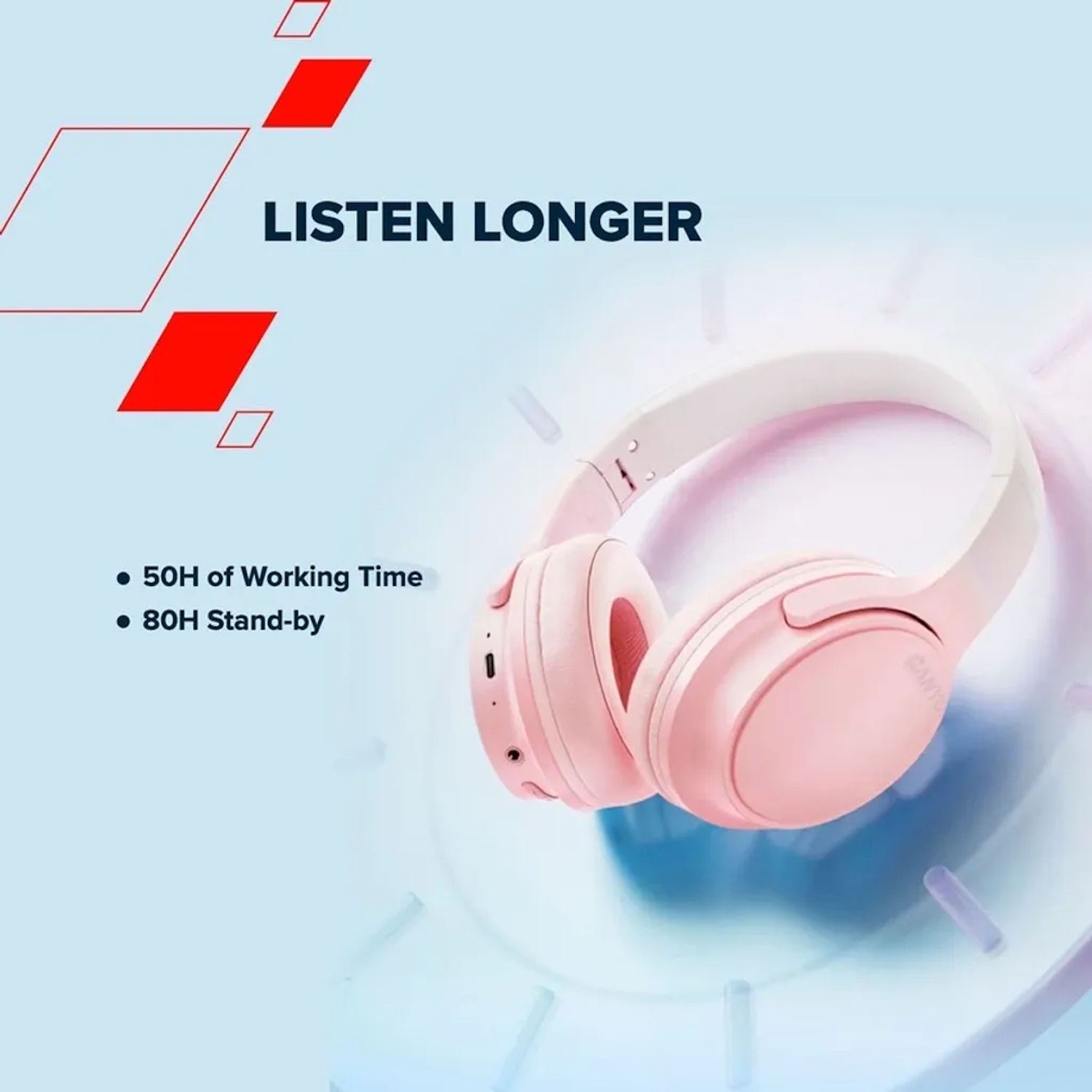 Kuni 50 tundi taasesitust ühe laadimisega → katkematu muusika kuulamine