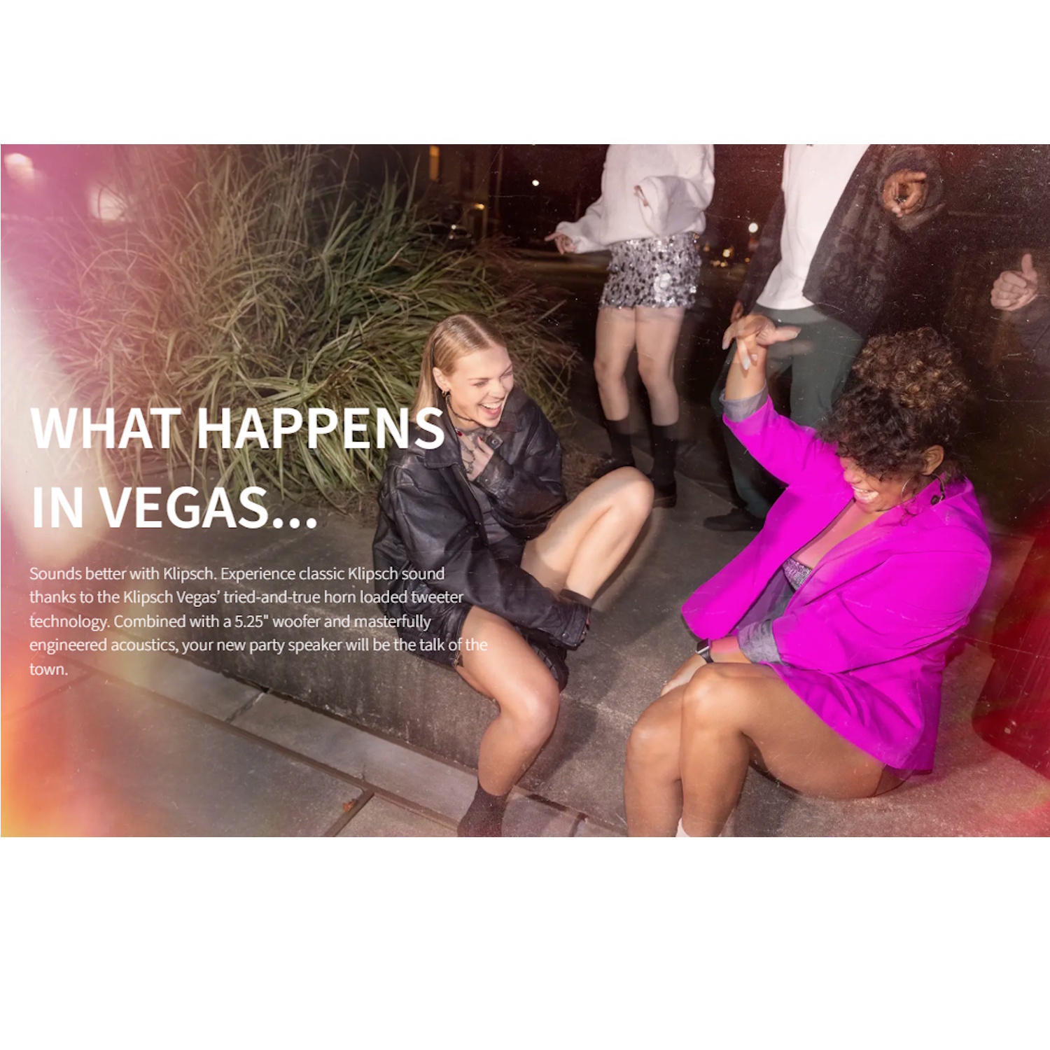 Klipsch Vegas sobib peoks, kus on vaja nii võimsust kui ka efekti. Ultra Bass ja Klipschi häälestus annavad muljetavaldava heli, RGB-valgustus ning mikrofoni/ instrumendi sisendid laiendavad kasutusvõimalusi. IPX4 kaitse ja kaasaskantav disain võimaldavad kõlarit kindlalt kasutada ka õues.