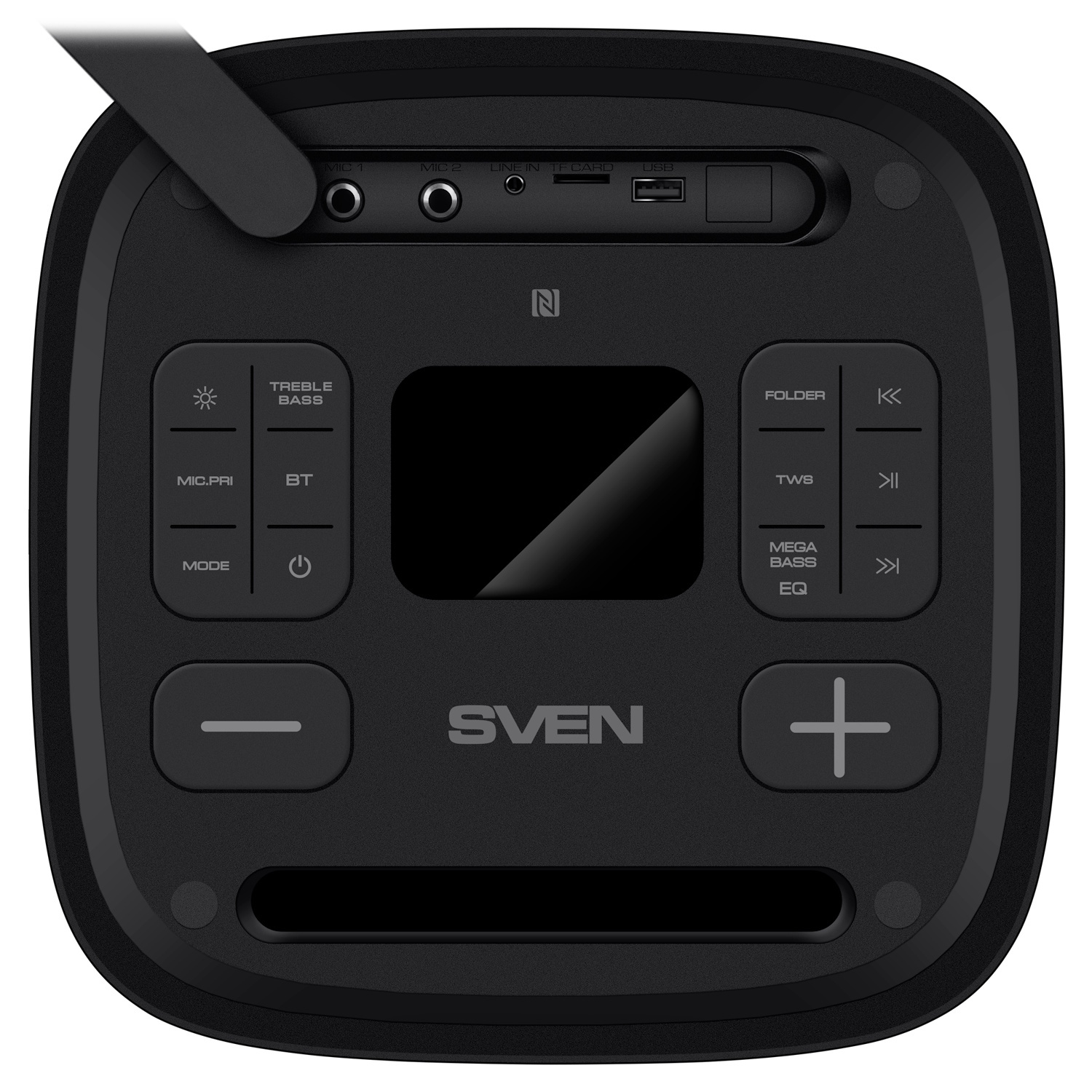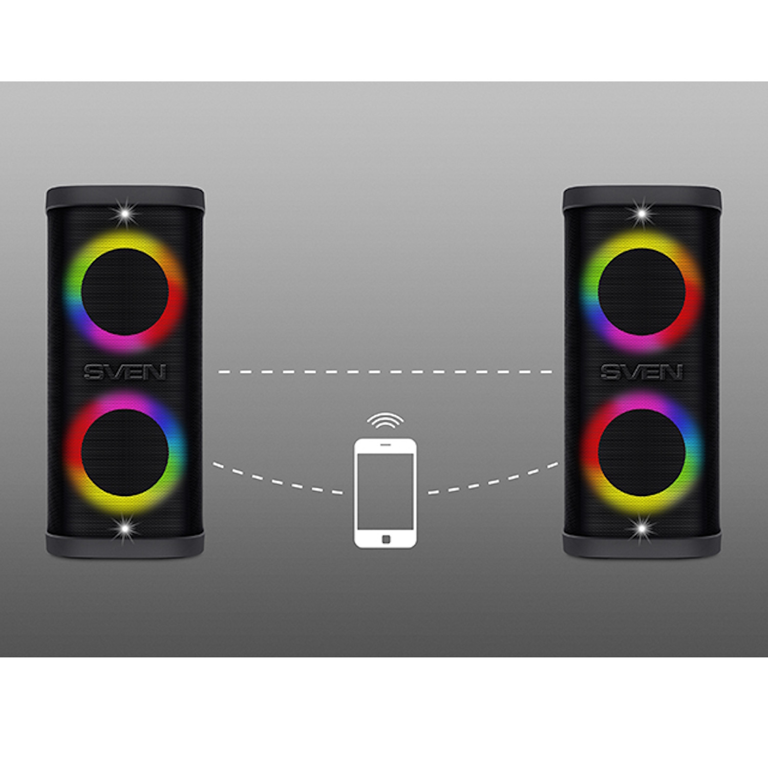 Kaasaskantav Bluetooth-kõlar SVEN PS-950 pakub võimsat heli 2 × 80 W (160 W RMS) koos sügava bassi ja laia heliväljaga, sobides nii siseruumidesse kui ka õues kasutamiseks. Kõlar on varustatud TWS-funktsiooni, IPX4 veekindluse, FM-raadio, USB ja microSD toe ning LED-ekraaniga, pakkudes kaasaegset funktsionaalsust ja pikka aku tööaega.