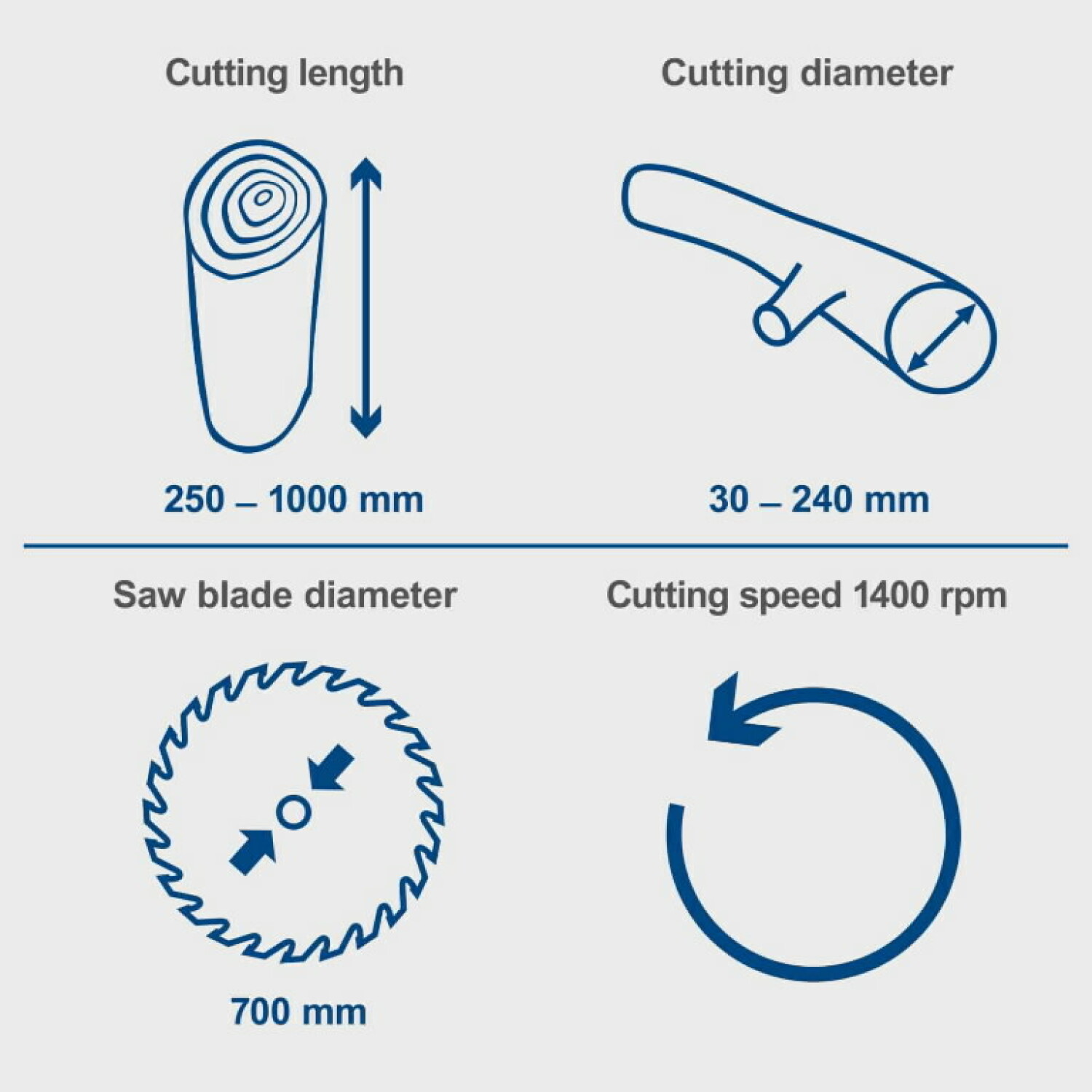 Kiikkreissaag HS730 on võimas ja usaldusväärne puidutöötlemisseade, mis on ideaalne suurte puuokste ja palkide lõikamiseks. Selle seadme maksimaalne lõikepikkus ulatub kuni 1000 mm ja see on varustatud 700 mm TCT saagiteraga.