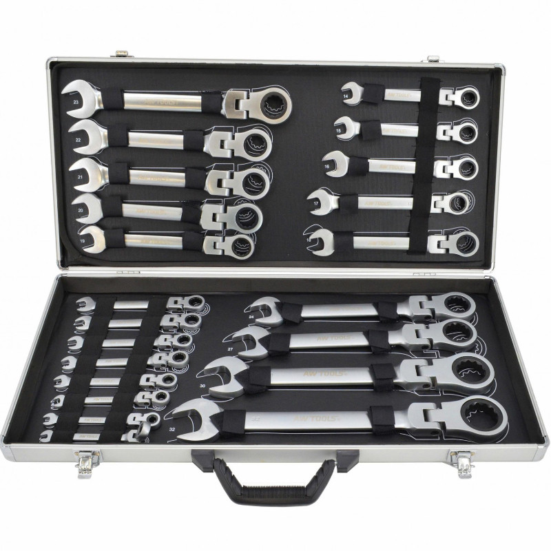 Kombinēto atslēgu ar reversu komplekts, 22gab., 6-32mm; AW39938 AWTOOLS