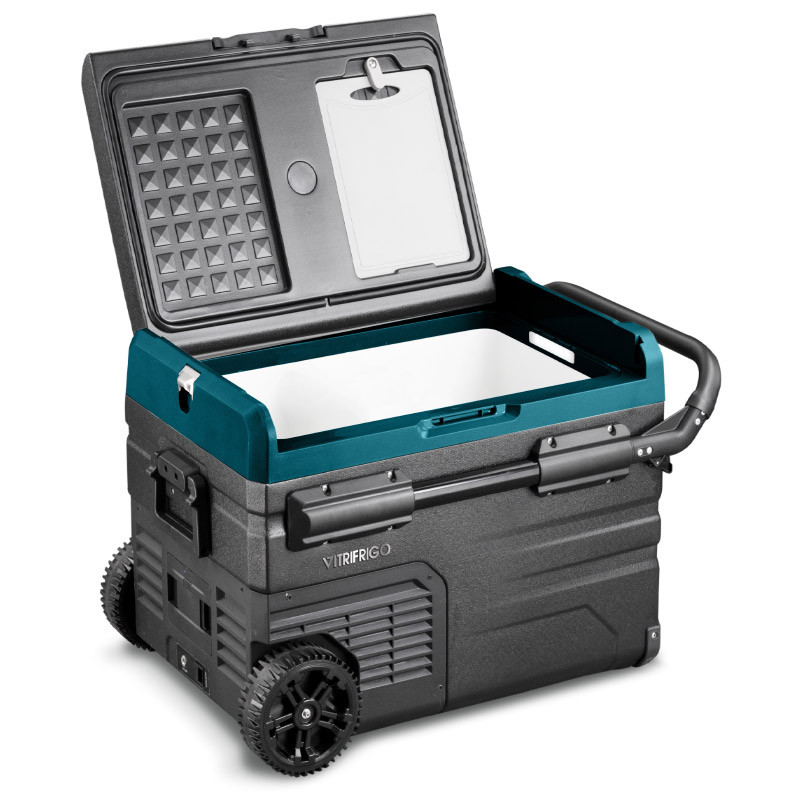 Pārnēsājams auto ledusskapis VFT40 Vitrifrigo - labākais pavadonis jūsu piedzīvojumiem ir izstrādāts, domājot par komfortu un inovācijām. Šis automašīnā pārnēsājamais ledusskapis ar 39,3 litru ietilpību nodrošina pietiekami daudz vietas jūsu iecienītāko dzērienu, uzkodu un ātri bojājošos pārtikas produktu uzglabāšanai.