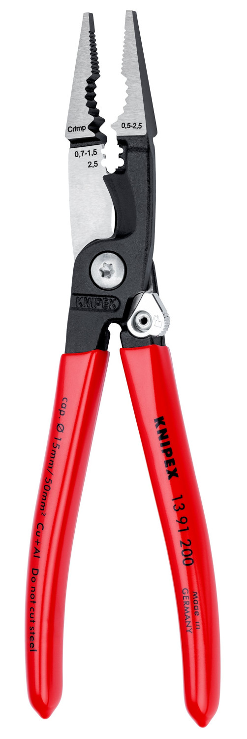 Ērti satverot plaknus un apaļus materiālus, locīšanai, deburrēšanai, kabeļu griešanai, vadu izolācijas noņemšanai un vadu ferrulu presēšanai.