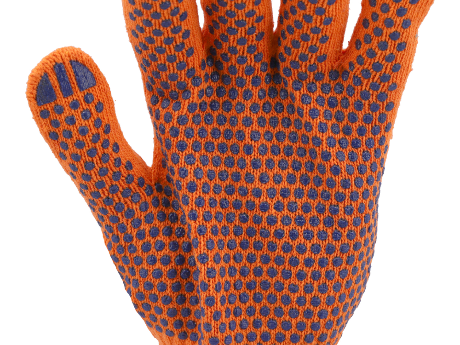 Kokvilnas cimdi ar PVC punktiem uz satveršanas daļas, kas uzlabo saķeri un palielina noturību pret nodilumu.