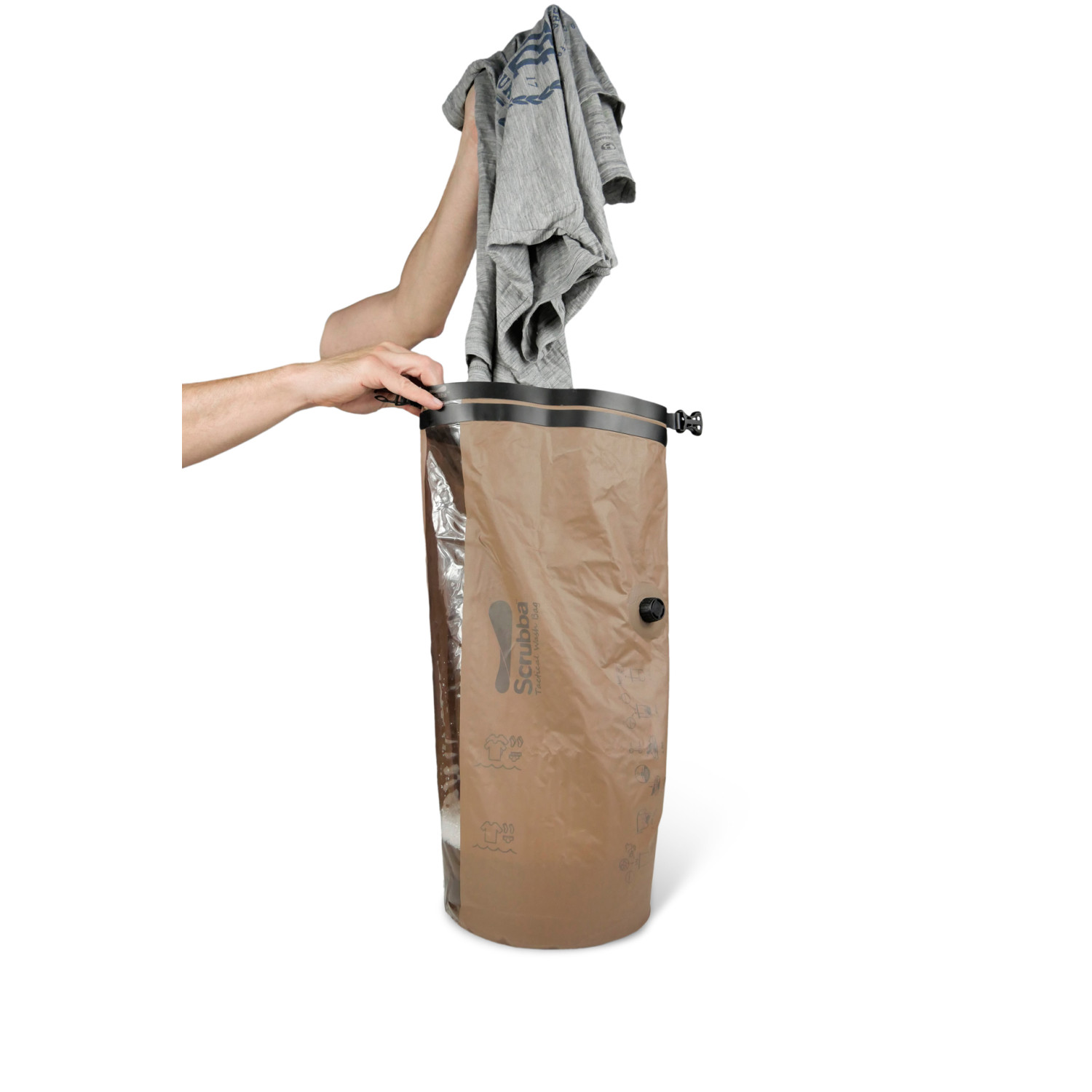 Visticamāk, mazākā veļas mašīna pasaulē: Scrubba veļas soma nodrošina lielisku mazgāšanas jaudu savā kompaktnajā izmērā. Pateicoties iebūvētajiem rokturiem, logam, uzpildes atzīmēm un rullējamajam aizvaram, Scrubba ir ārkārtīgi viegli lietojama un īsā laikā nodrošina pārsteidzošus rezultātus. Ar divkāršu mazgāšanas jaudu (salīdzinot ar roku mazgāšanu), ūdens taupīšanu un izcilu efektivitāti. Izmantotais materiāls ir izturīgs un izvēlēts tā, lai saglabātu pilnu funkcionalitāti ilgstoši. Sešos soļos uz tīru rezultātu: 1. Ielieciet veļu un ūdeni. 2. Rullējiet Scrubba veļas somu un aizveriet. 3. Izspiediet gaisu no somas caur iebūvēto vārstu. 4. Berzējiet 30 sekundes līdz 3 minūtēm (atkarībā no mazgājamā un netīrības pakāpes). 5. Izskalojiet veļu ar tīru ūdeni. 6. Izžāvējiet un gatavs. Ideāli piemērota ceļojumiem, brīvā dabā, kempingam un atpūtai.