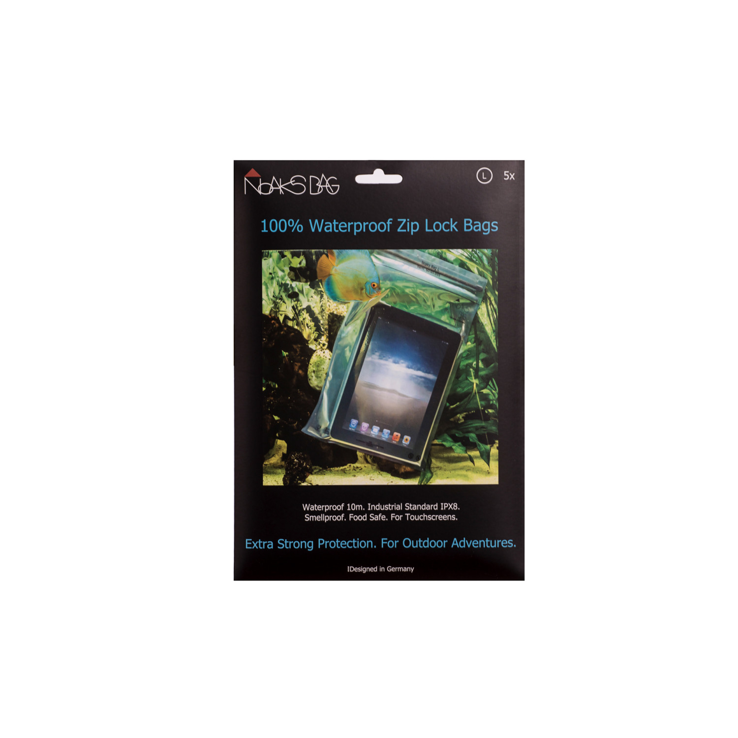 Noaks somas nodrošina augstu drošību un aizsardzību pret kaitīgiem faktoriem, piemēram, ūdeni, lietu, smiltīm, netīrumiem un sniegu. Tās atbilst augstākajām Vācijas kvalitātes prasībām. Somas ir ūdensizturīgas saskaņā ar IPX 8 (līdz vismaz 10 metru dziļumam 2 stundas), un tās var izmantot ar skārienekrāniem un telefoniem. Somas ir bez smaržas, drošas pārtikai, ļoti izturīgas un robustas, pateicoties kompozītmateriālam un augstas kvalitātes apstrādei. Lieliska cena par sniegto kvalitāti. Ideāli piemērotas jūsu vērtīgajām lietām, pārtikai, elektroniskām ierīcēm un daudzām citām lietām.
