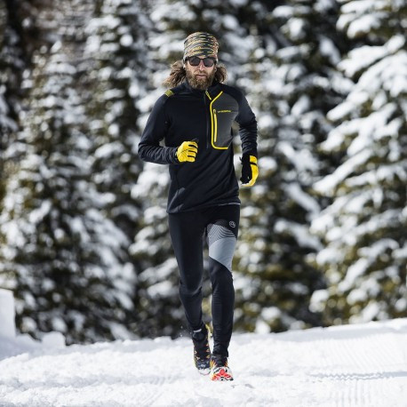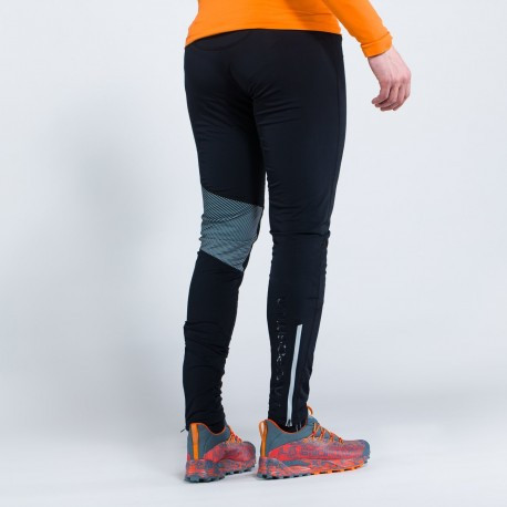 Pieguļošas ziemas bikses taku skriešanai. No tehniskā auduma ar uzkārstu iekšpusi.