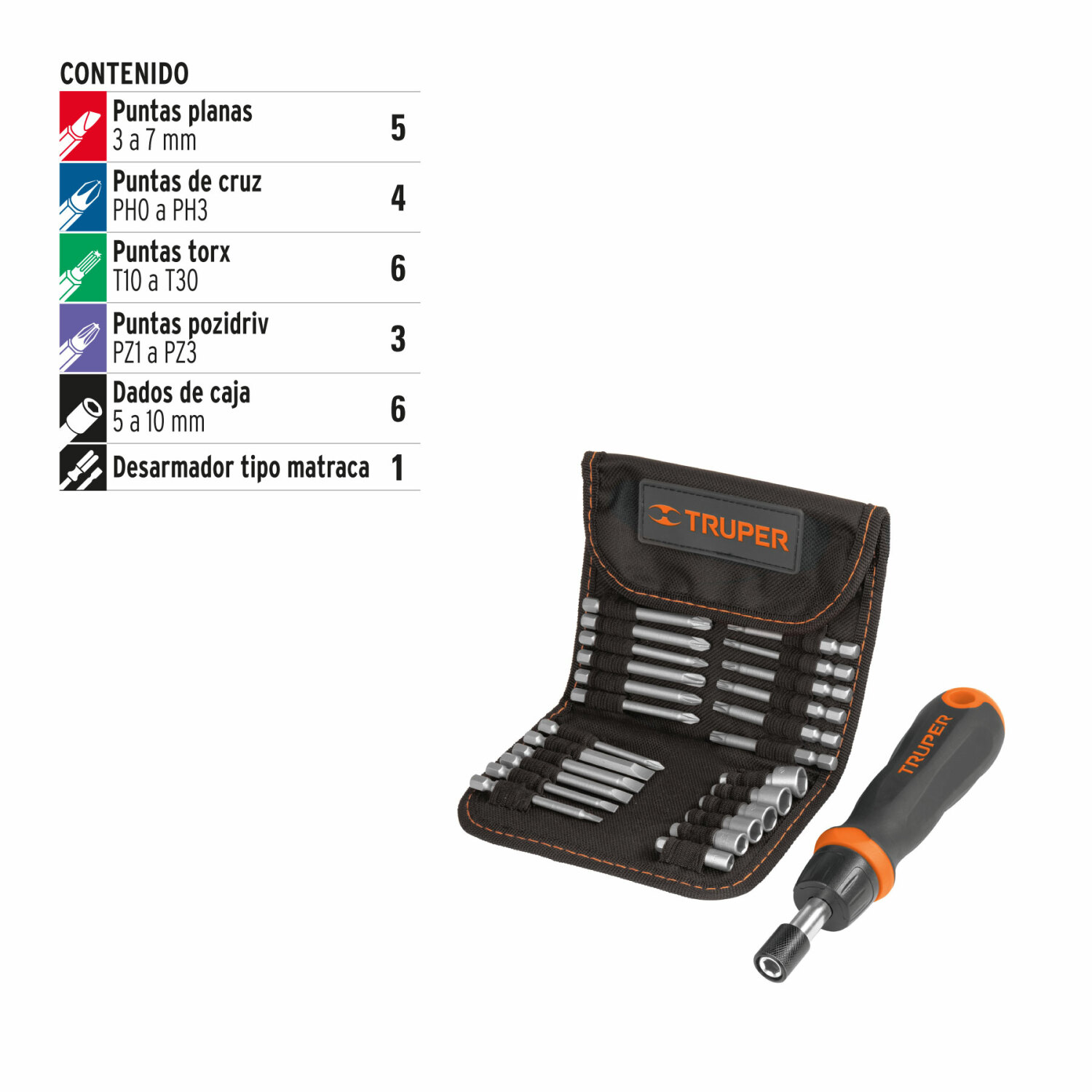 Sprūdrata skrūvgriežu un uzgaļu komplekts, 26gab JDM-26 TRUPER