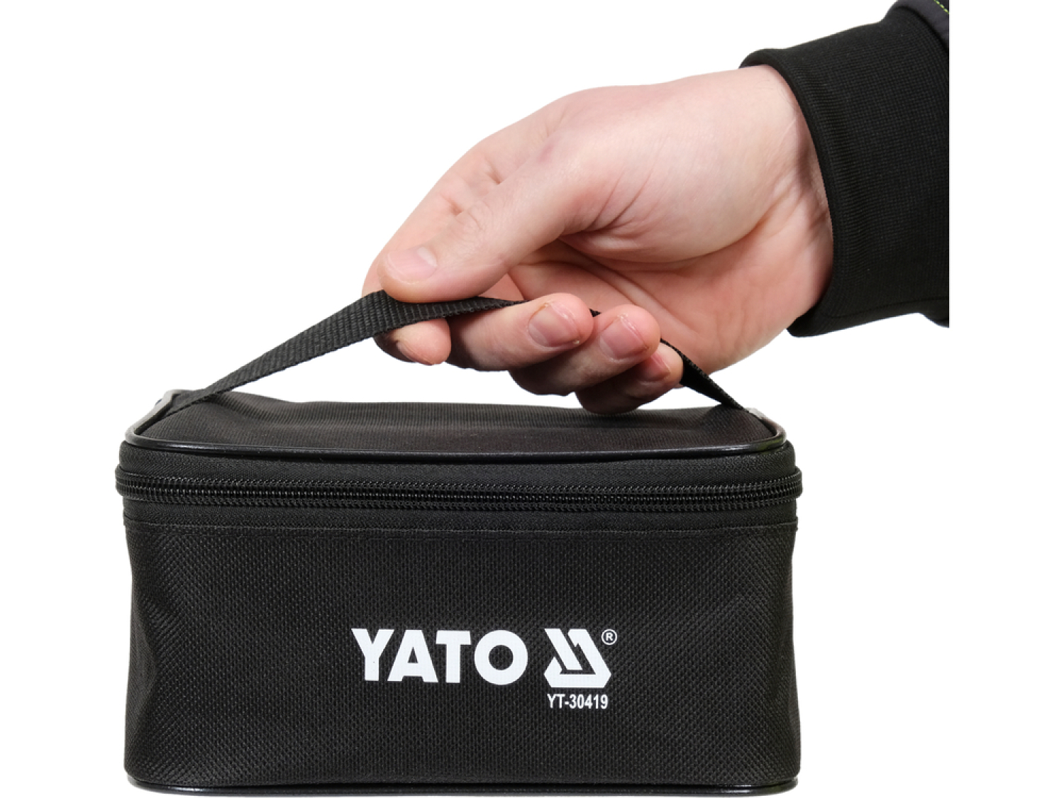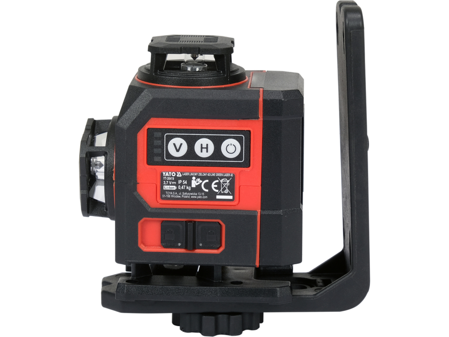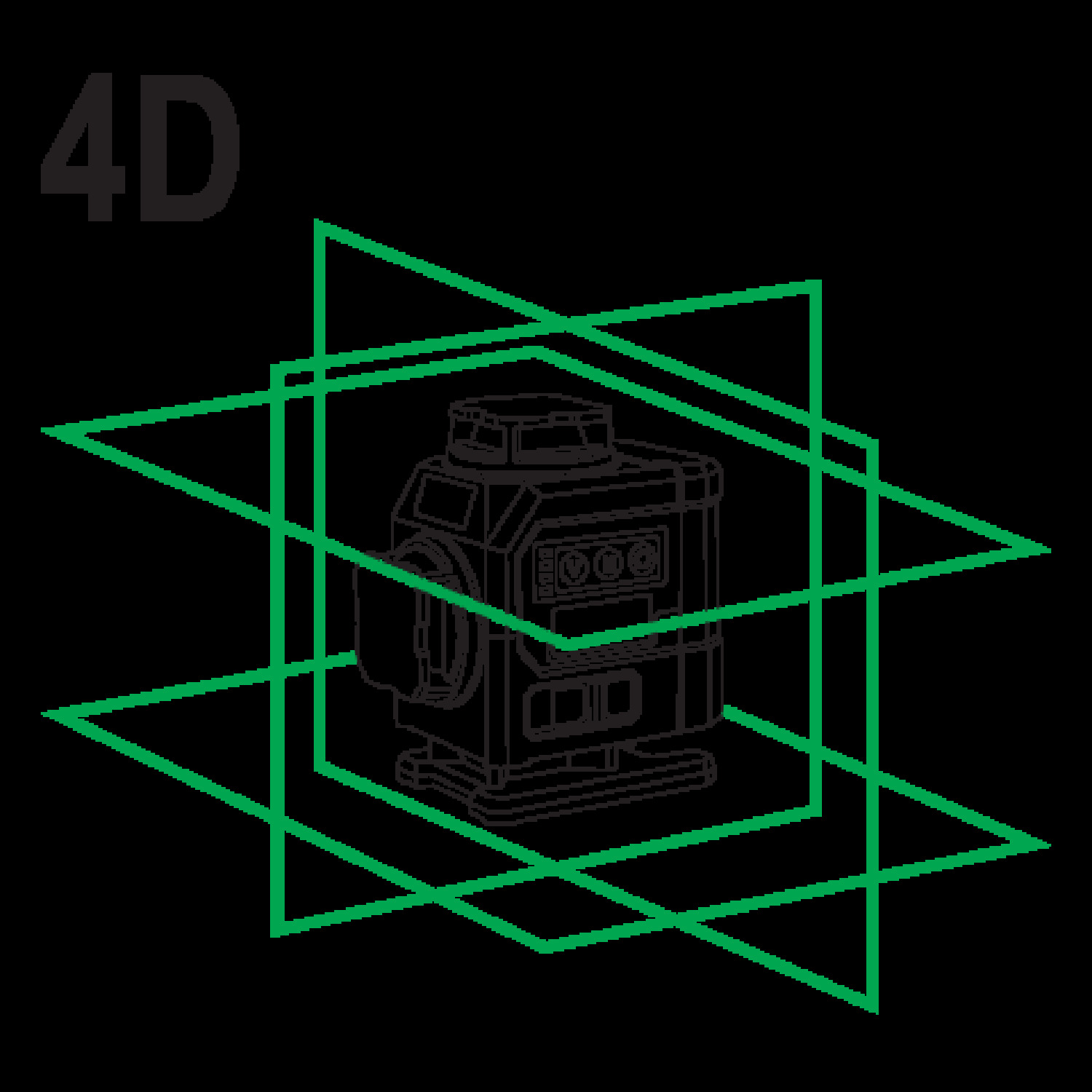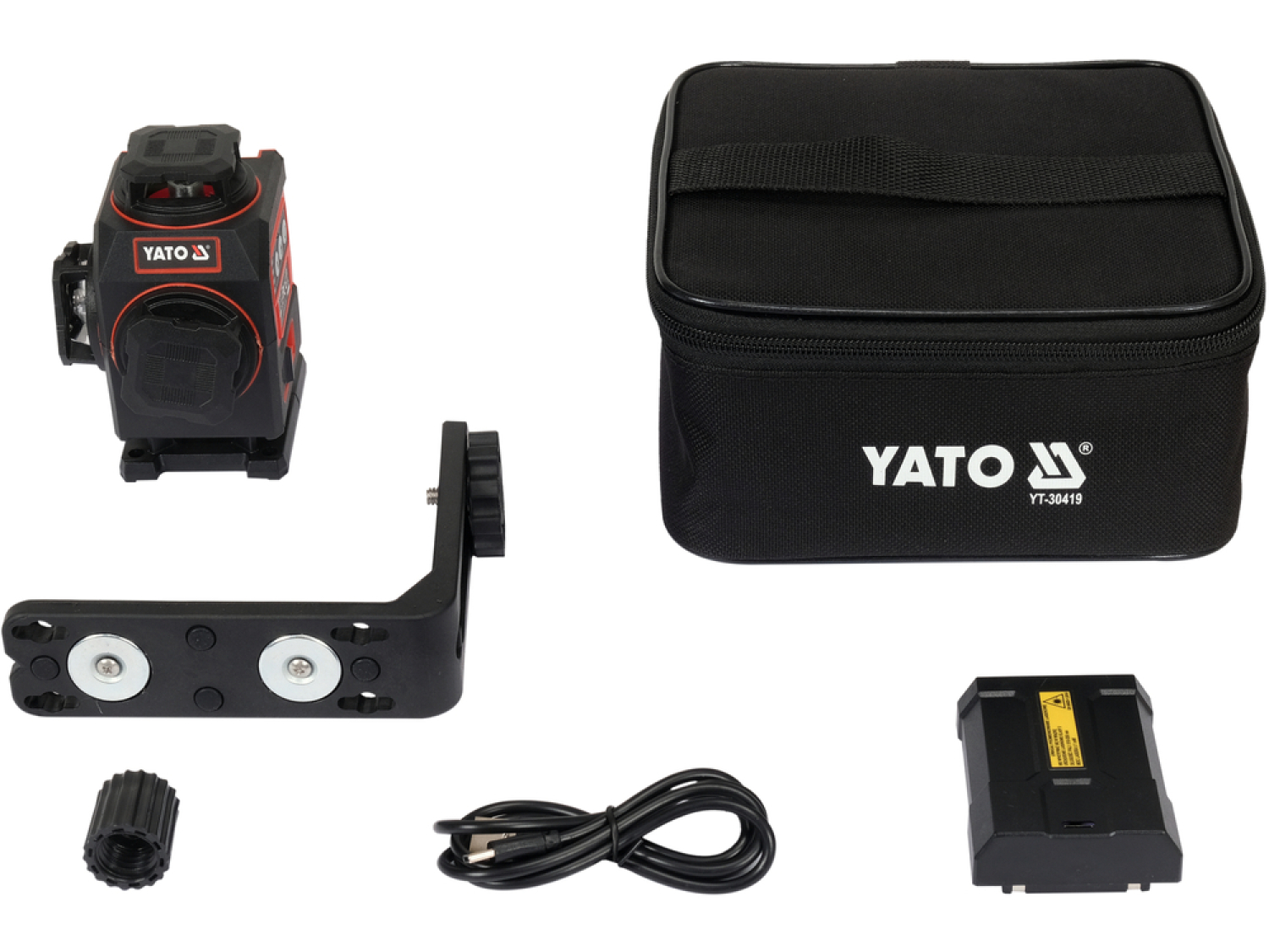 YATO YT-30419 ir pašlīmeņojošs 4D četrplānu lāzers mini versijā ar zaļu staru, kas izstaro 16 līnijas - pa četrām katrā plaknē. Tas ļauj jums vienlaikus iegūt horizontālas un vertikālas līnijas uz jebkuras sienas reālajā laikā.