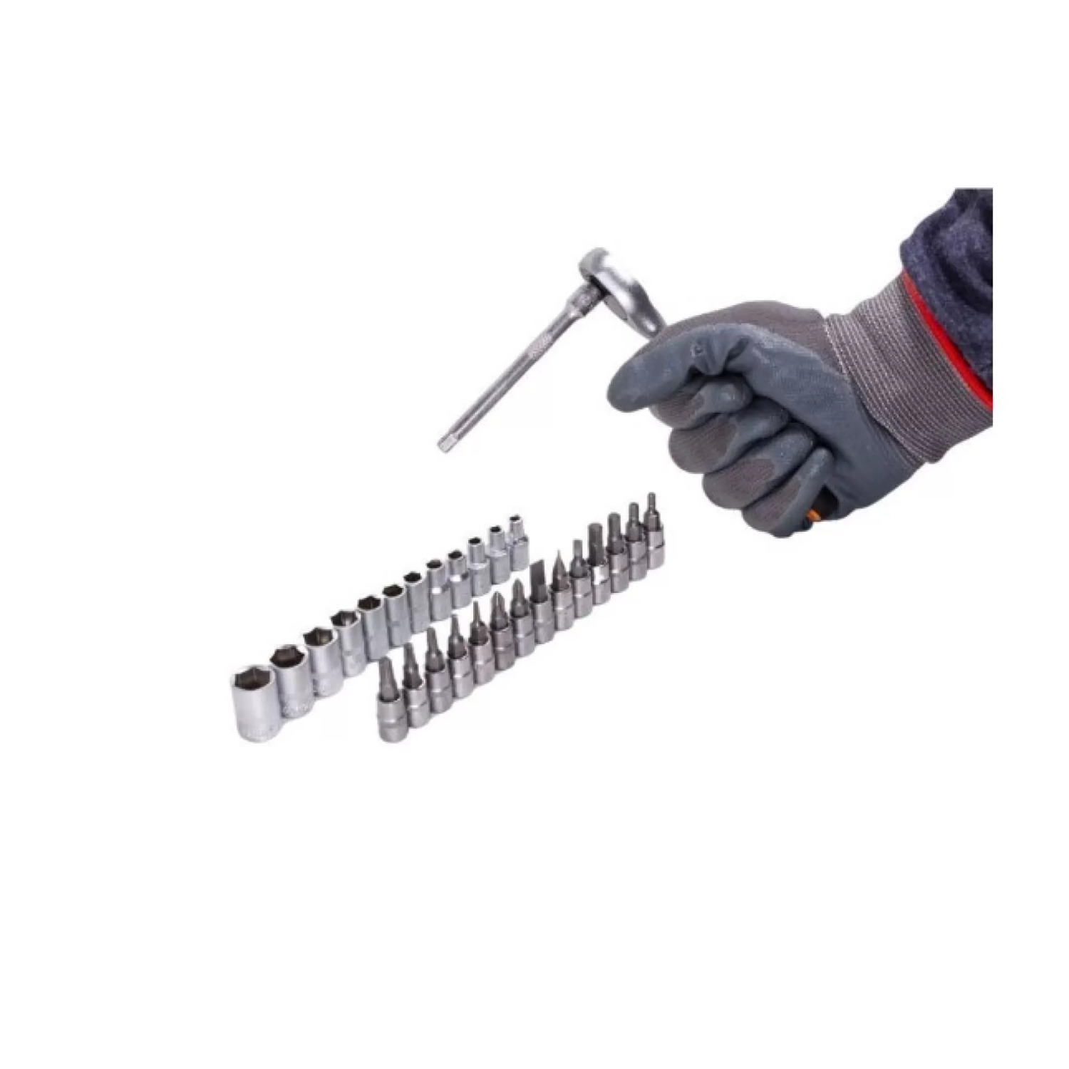 ISMA IS-2028-5 komplekts ietver 28 priekšmetus no CrV tērauda ar 1/4 collu kvadrātveida savienojumu: 12 torņu galvas (4-13mm), trieciena atslēgu, 100 mm pagarinātāju un 14 bitus (Torx: T10, T15, T20, T25, T30, Hex: 3-6mm, SL: 4, 5.5, 7mm, PH1, PH2). Tas ir ideāli piemērots vītņu savienojumu montāžai un demontāžai automobiļu tehniskās apkopes laikā vai mājas remontdarbiem. Komplektam ir piemērots ne tikai pašam lietošanai garāžā un mājās, bet arī profesionālai izmantošanai servisos.