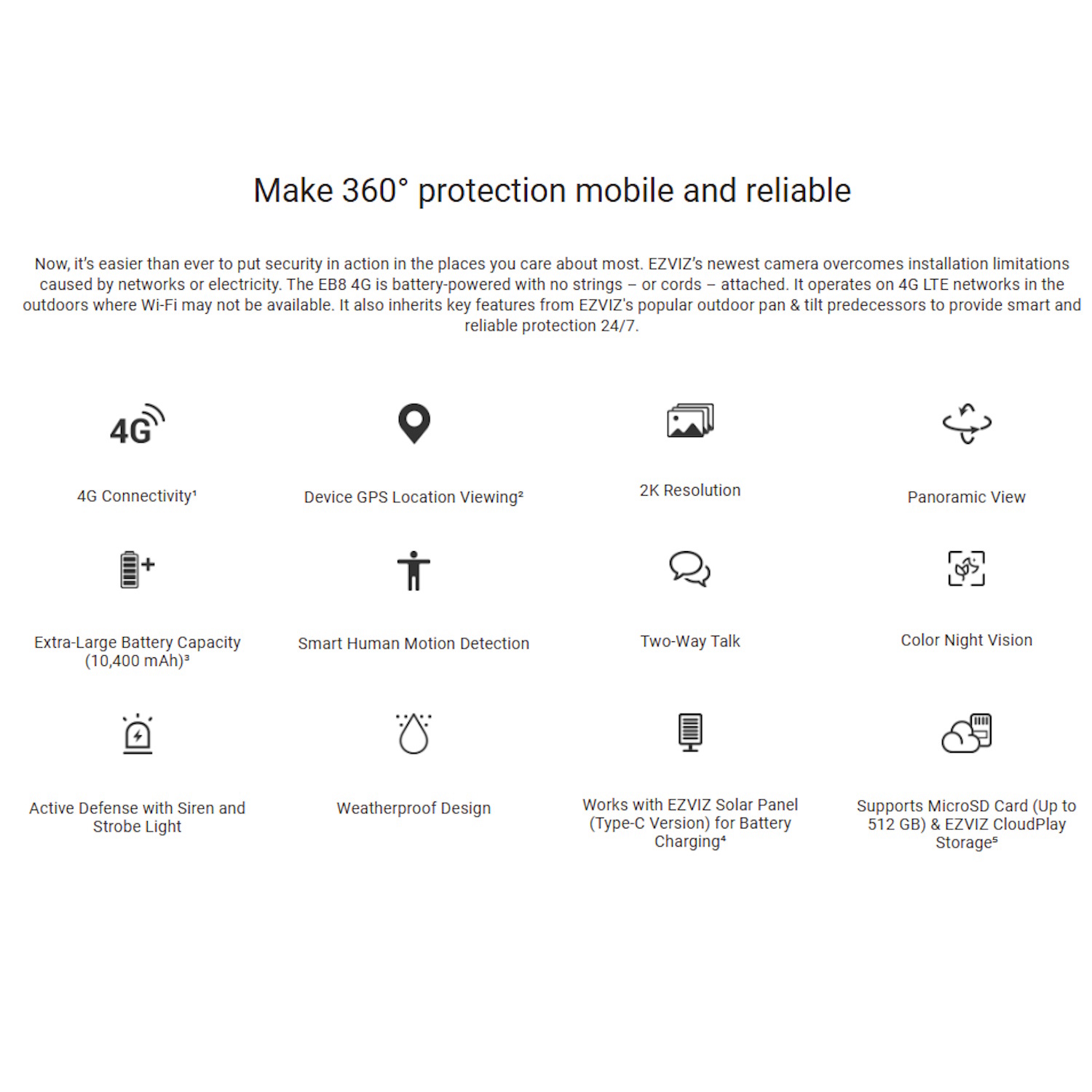 4G LTE savienojamība – Nav nepieciešams Wi-Fi – Palieciet aizsargāti visur ar 4G LTE atbalstu, kas ir ideāli piemērots novērošanai attālos apgabalos.