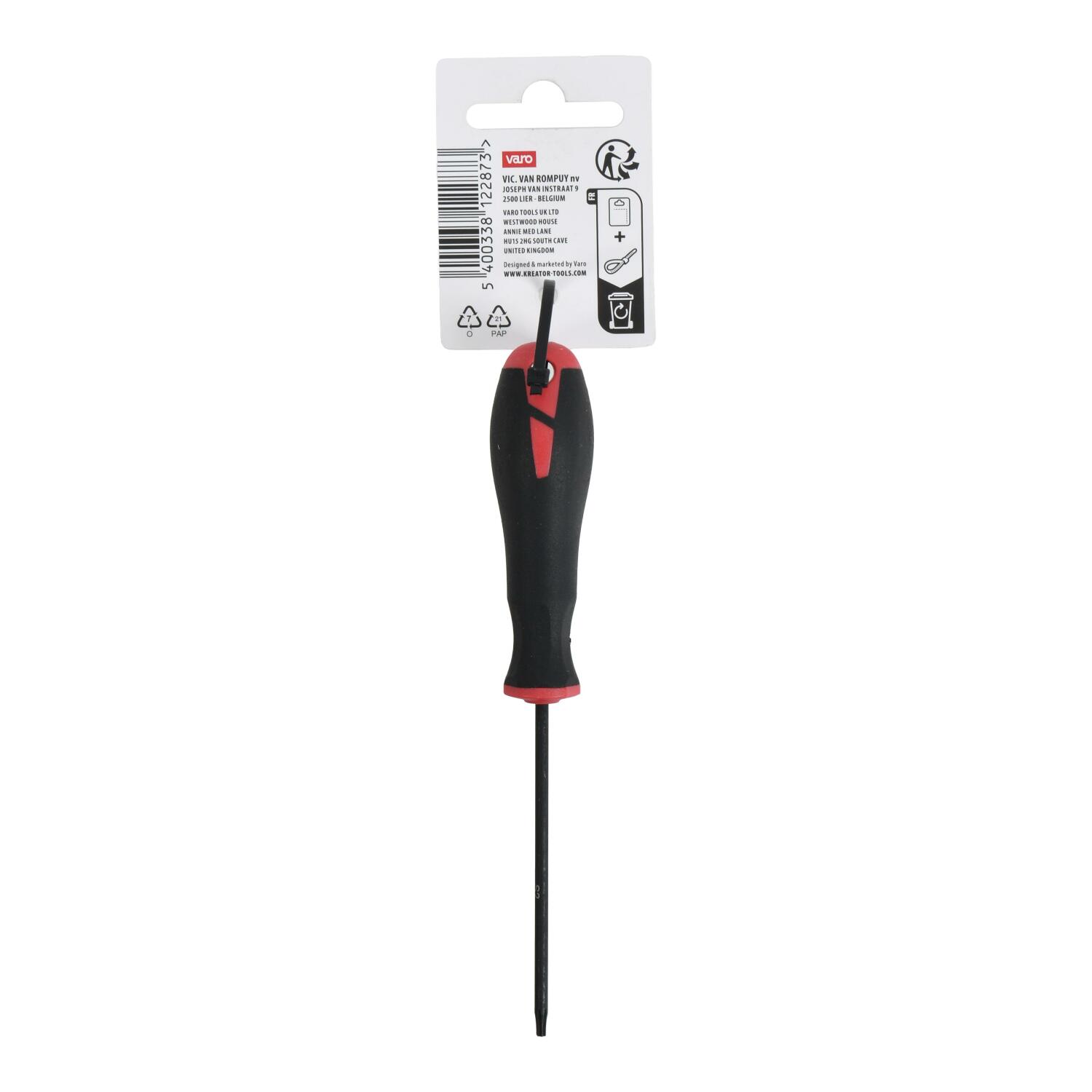 KREATOR KRTH21103 torx skrūvgriezis ar 75 mm garu asmeni ir izgatavots no augstas kvalitātes S2 tērauda. Magnētiskā galva paātrina skrūvju griešanas procesu. Mīkstā pretslīdes rokturis nodrošina drošu satvērumu, un rokturis ir aprīkots ar integrētu karabīni vieglai uzglabāšanai.