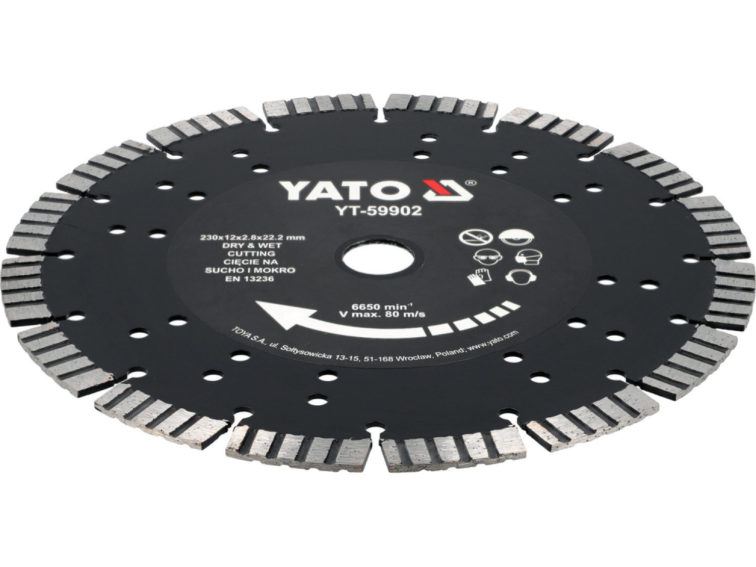 Dimanta disks dzelzsbetona precīzai griešanai, kā arī ķieģeļu, granīta, mūra, akmens un smilšakmens griešanai, gan sausu, gan mitru apstākļu laikā.
