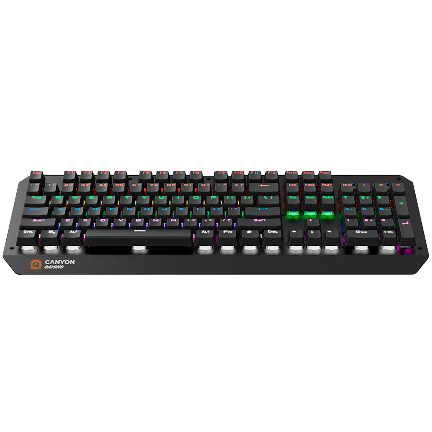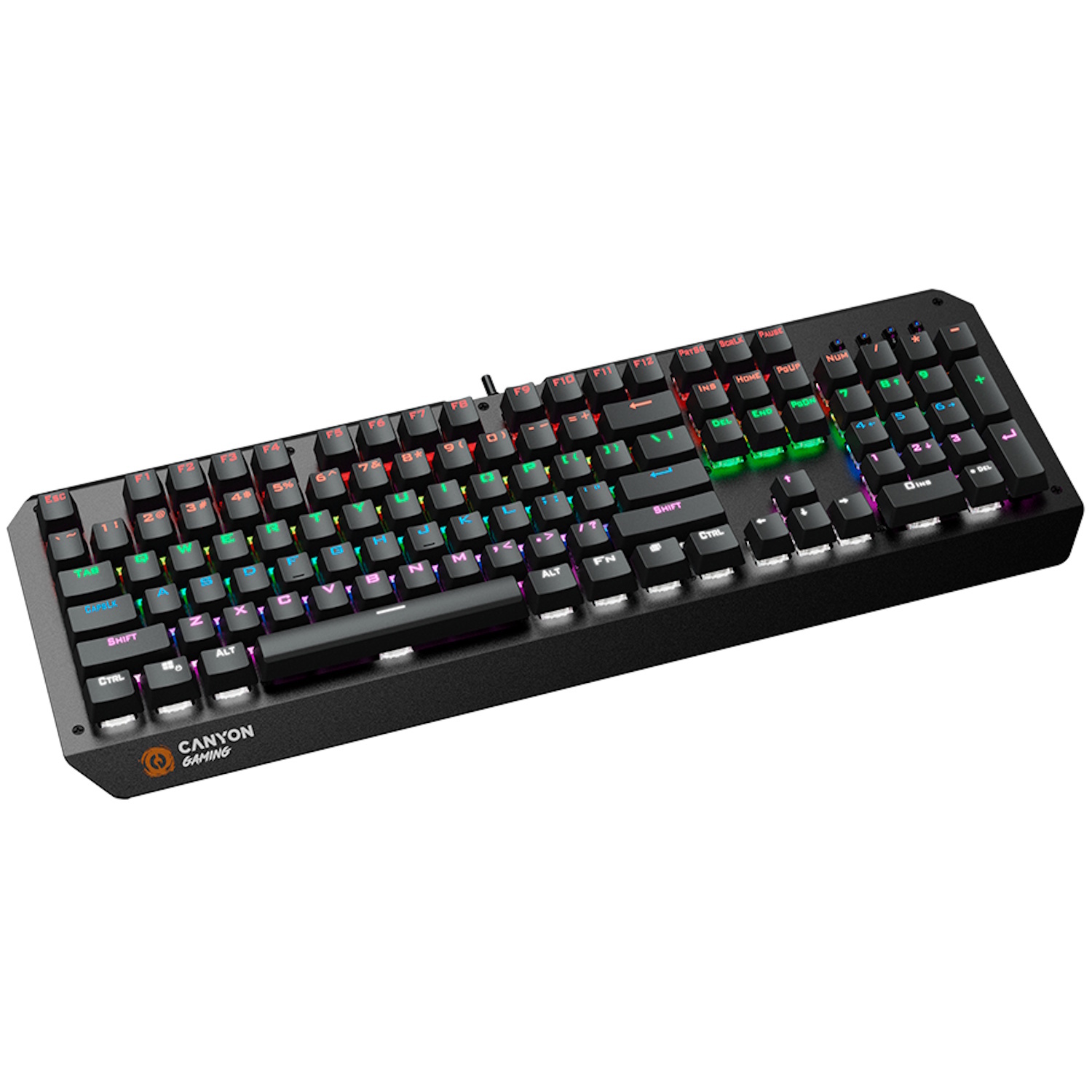 Canyon Hazard GK-6 (CND-SKB6-RU) ir pilna izmēra vadu mehāniskā spēļu klaviatūra ar 104 taustiņiem un RGB apgaismojumu, kas paredzēta precīzai un dinamiskai vadībai spēlēs. Mehāniskie Blue switch slēdži nodrošina izteiktu klikšķa sajūtu un ātru atgriezenisko saiti, padarot to piemērotu gan spēlēšanai, gan rakstīšanai. Stabils USB savienojums un klasisks melns dizains papildina uzticamu ikdienas lietošanas pieredzi.