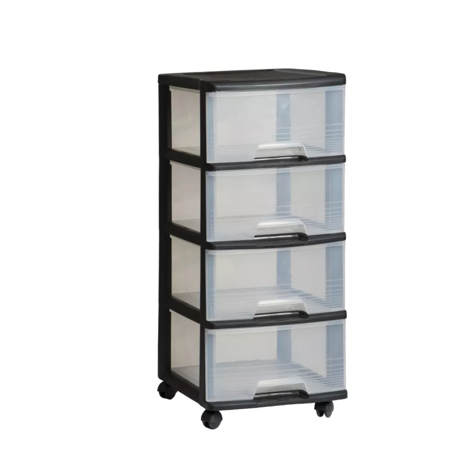 Stilīga uzglabāšanas kumode Curver 0806771146, kura sastāv no četriem ietilpīgiem atvilktņiem. Šī kumode ļaus efektīvi organizēt un uzglabāt visus sīkumus un aksesuārus vienuviet, pateicoties caurspīdīgām atvilktnēm un ergonomiskiem rokturiem. Kumodi ir viegli pārvietot, jo tai ir ritenīši.
