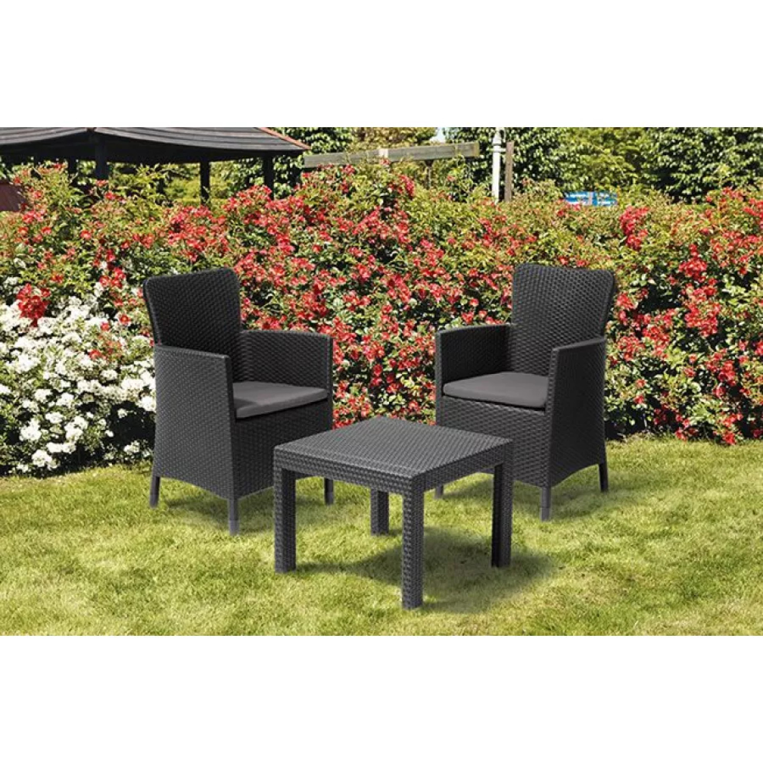 Dārza mēbeļu komplekts Salvador Balcony Set no KETER ir elegants komplekts ar rotangpalmas virsmas tekstūru, kas ietver divus atzveltnes krēslus un kvadrātveida galdu. Ergonomiski profilētas atzveltnes un mīkstie krēsli ar spilveniem nodrošinās, ka katrs brīdis ārā ir patīkams un relaksējošs. Šis viegli tīrāmais mēbeļu komplekts ir izturīgs pret nelabvēlīgiem laika apstākļiem un UV staru ietekmi. Komplektā ir pieejams klasiskā krāsu paletē.
