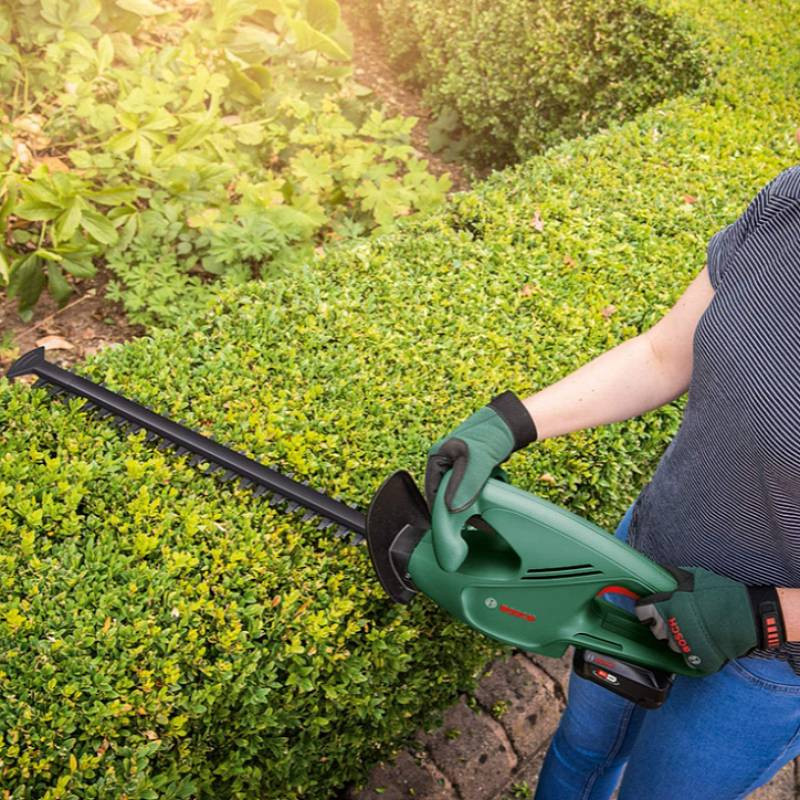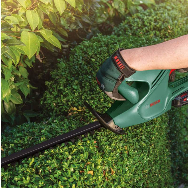 Dzīvžoga kopšana ir diezgan laikietilpīga nodarbe, ja šajā darbā izmanto vecās labās rokas šķēres. Ziniet, labāk ir investēt salīdzinoši nelielus līdzekļus, lai iegādātos mehanizētas dzīvžoga šķēres, kas palīdzēs ietaupīt milzum daudz tik dārgā laika, ko labāk veltīt atpūtai ar ģimeni. BOSCH EasyHedgeCut 18-45 būs perfekta izvēle - tās ir ērtas, vieglas un darbspējīgas gana ilgi ar vienu akumulatora uzlādi - darbības laiks 50 minūtes. Ņemot vērā šo šķēru darbības ātrumu, domājams, jūs ātri vien ar darbu tiksiet galā. POWER FOR ALL 18 V litija jonu akumulators (šajā piedāvājumā ir viens 2,0 Ah akumulators) nodrošinās tiešām augstvērtīgu veiktspēju. Šo dzīvžoga šķēru asmens garums ir 45 cm un zobu atstarpe - 15 mm, tātad ar šīm šķērēm instruments palīdzēs tikt veikli galā arī ar nedaudz resnākiem zariņiem, ar to turklāt ērti iespraukties šaurākās vietās - acumirklī rezultāts būs panākts. Asmens galu aizsargs nodrošina drošu griešanu gar sienām un celiņiem.