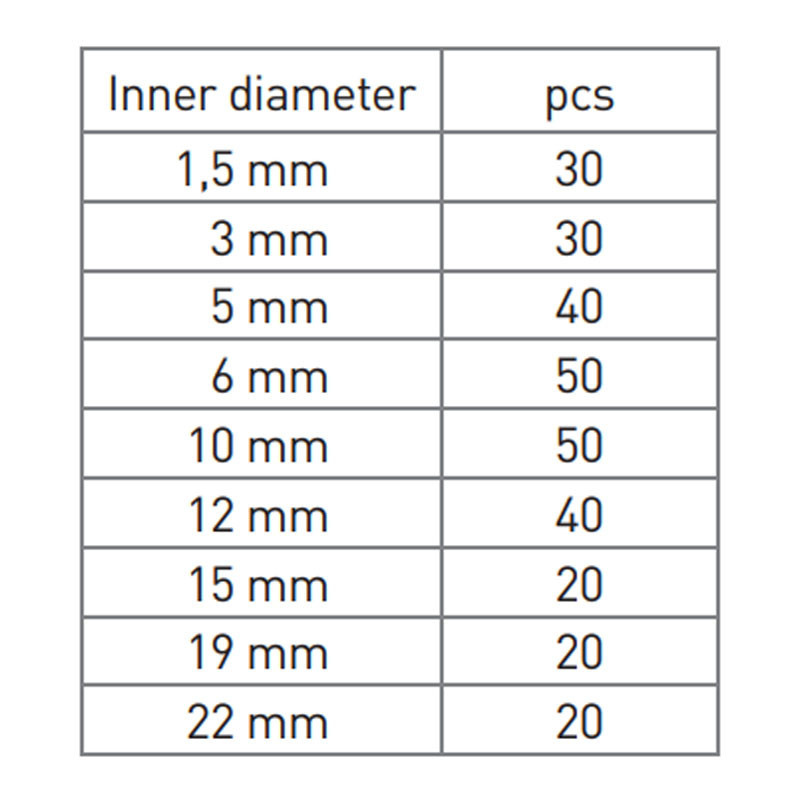 | Izmērs, mm | 5; 6; 10; 12; 19; 22; 15; 3; 1.5 |