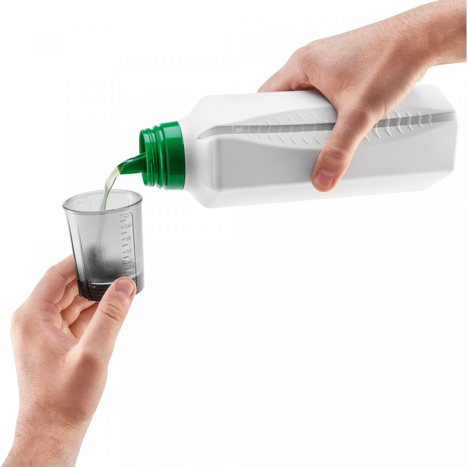 Mēslojumu vai pesticīdus var viegli dozēt, izmantojot tvertnes vāciņā iebūvēto mērtrauku.