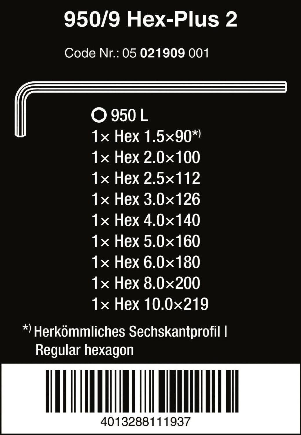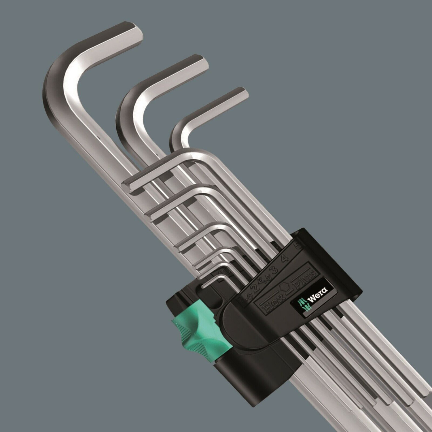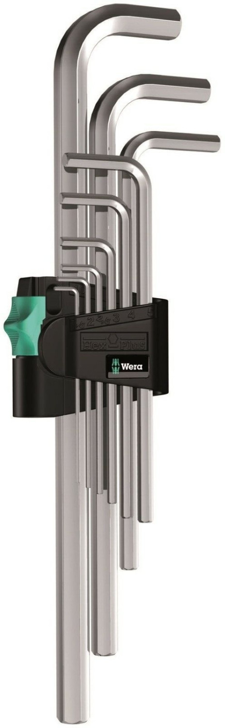 WERA 950/9 Hex-Plus ir augstākās kvalitātes L veida 9 atslēgu komplekts sešstūra ligzdas skrūvēm.