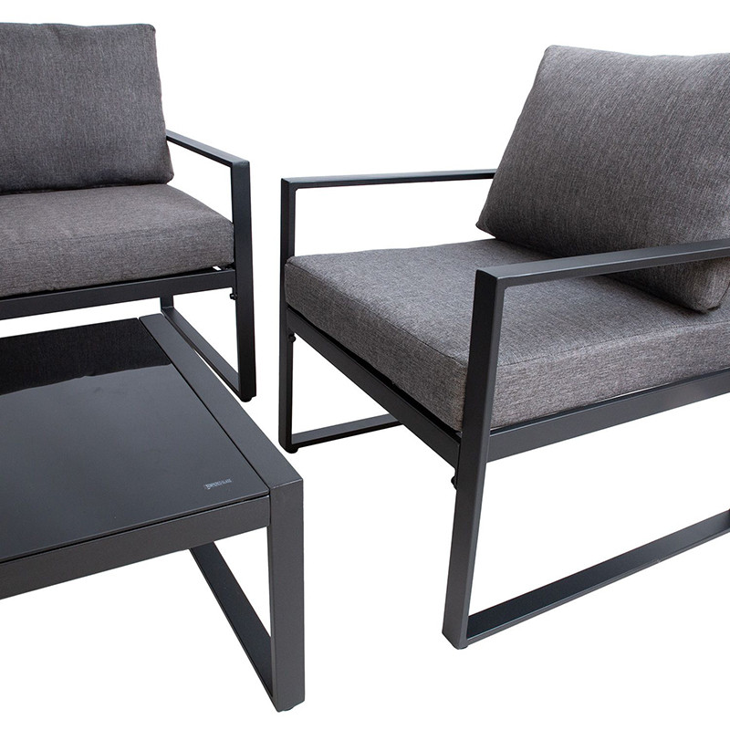 Sēdekļa un atzveltnes spilveni ir iekļauti komplektā un pārklāti ar vērptu poliesteru.