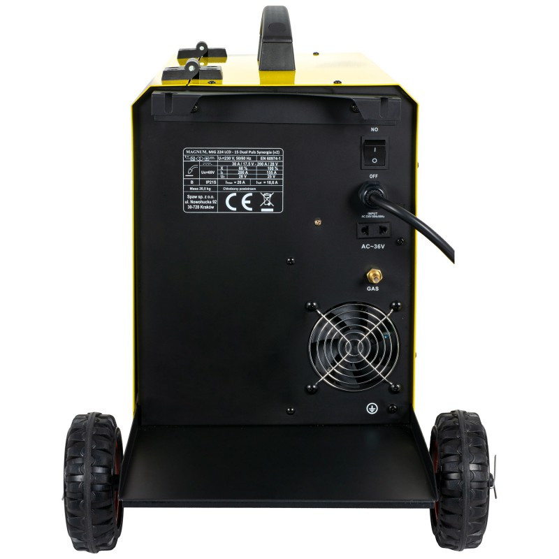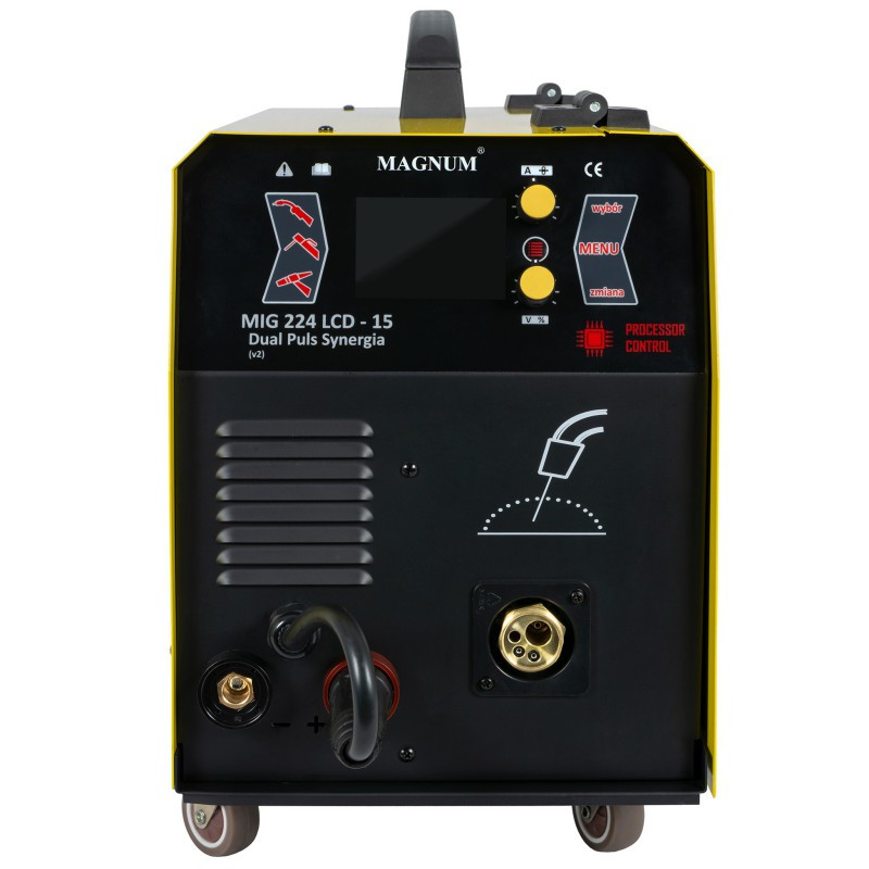 MAGNUM MIG 224/15 LCD DUAL PULS V2 ierīce atjauninātā versijā ar jaunu displeju un programmatūru ir viegla pārnēsājama pusautomātiska metināšanas iekārta, kas tiek darbināta no vienfāzes 230 V tīkla ar maksimālo metināšanas strāvu 200 A.