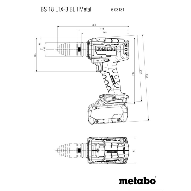 Akumuliatorinis gręžtuvas BS 18 LTX-3 BL I, 2x5,5Ah, LiHD, METABOX; 603181660 METABO