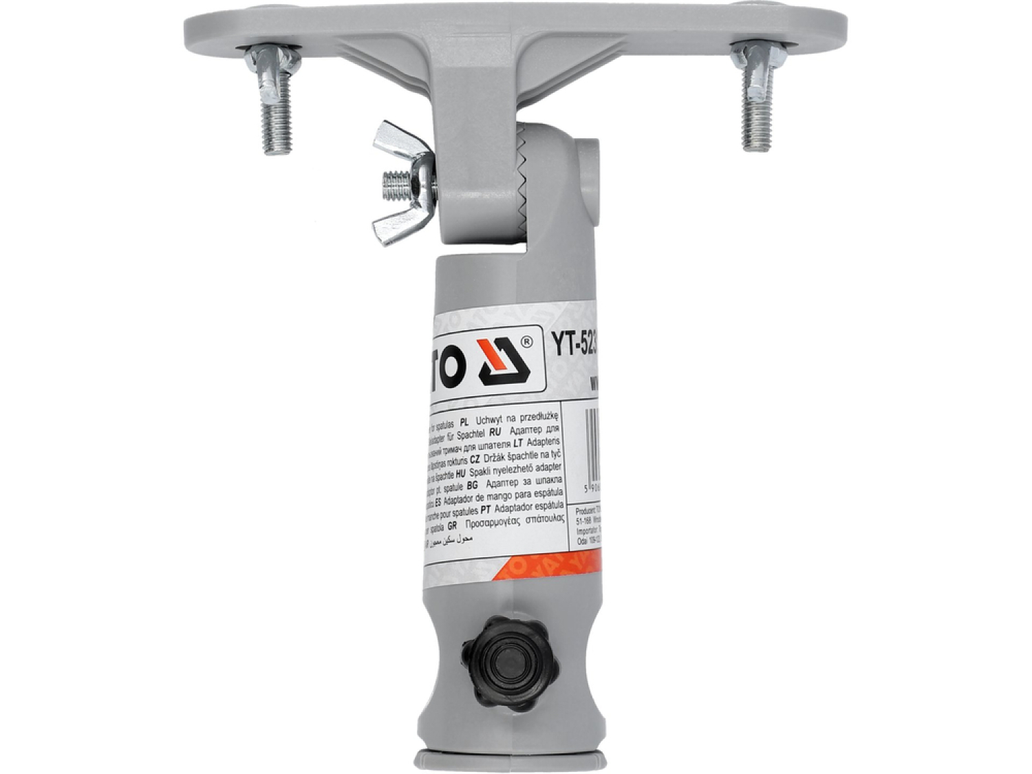 Šis YATO glaistyklės laikiklis YT-52317 yra universalus priedas, leidžiantis montuoti prailginimus arba strypus prie glaistyklės. Jo gale esanti speciali jungtis yra suderinama su strypais, baigiančiaisis trapeziniu kūnu, sraigtu ir kai kuriais užsegimais. Dantyta jungtis leidžia reguliuoti kampą bet kokiu, išskyrus standų, kampu.