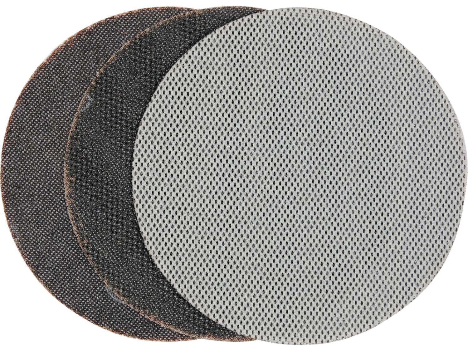 Slėgimo tinklelio diskai su dulkėms pralaidžiu velcro. Šie diskai skirti kietų tinkų, tokių kaip glazūruoti, gipsiniai tinkai, šlifavimui.