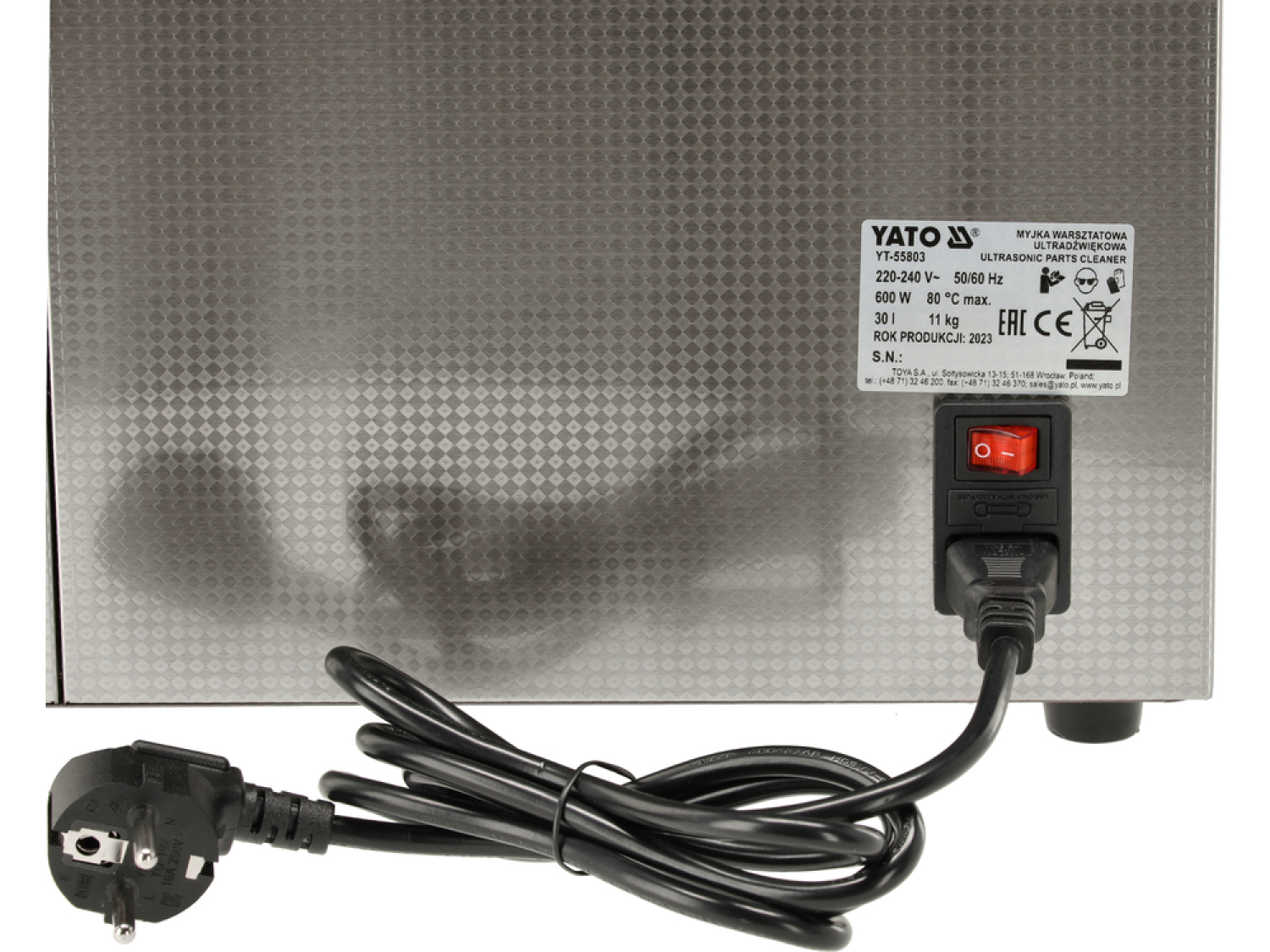 YATO ultragarso valymo aparatas YT-55803 yra veiksmingas ir patikimas sprendimas valyti įvairius daiktus, naudojant ultragarso technologiją. Su 30 litrų talpa ir galingumu 600 W, šis prietaisas puikiai tinka dirbtuvėms ir namų apyvokos reikmėms.