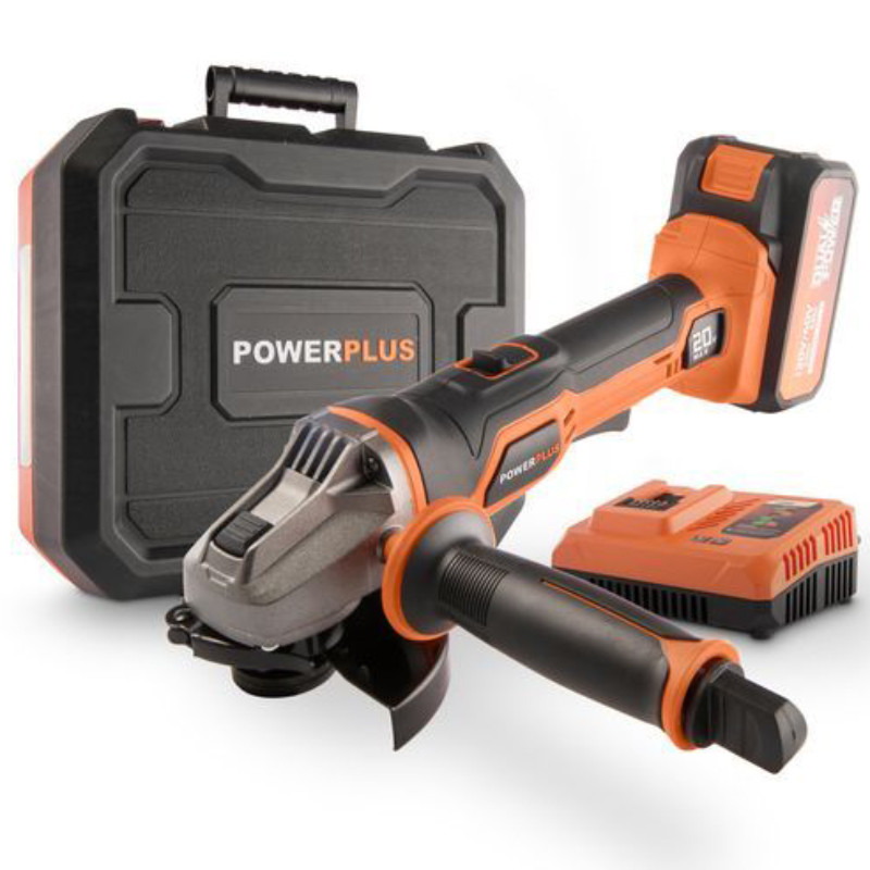 Akumuliatorinis kampinis šlifuoklis 20V, Ø115mm, 2x20V, 5,0/2,5Ah, POWDP35150 POWERPLUS