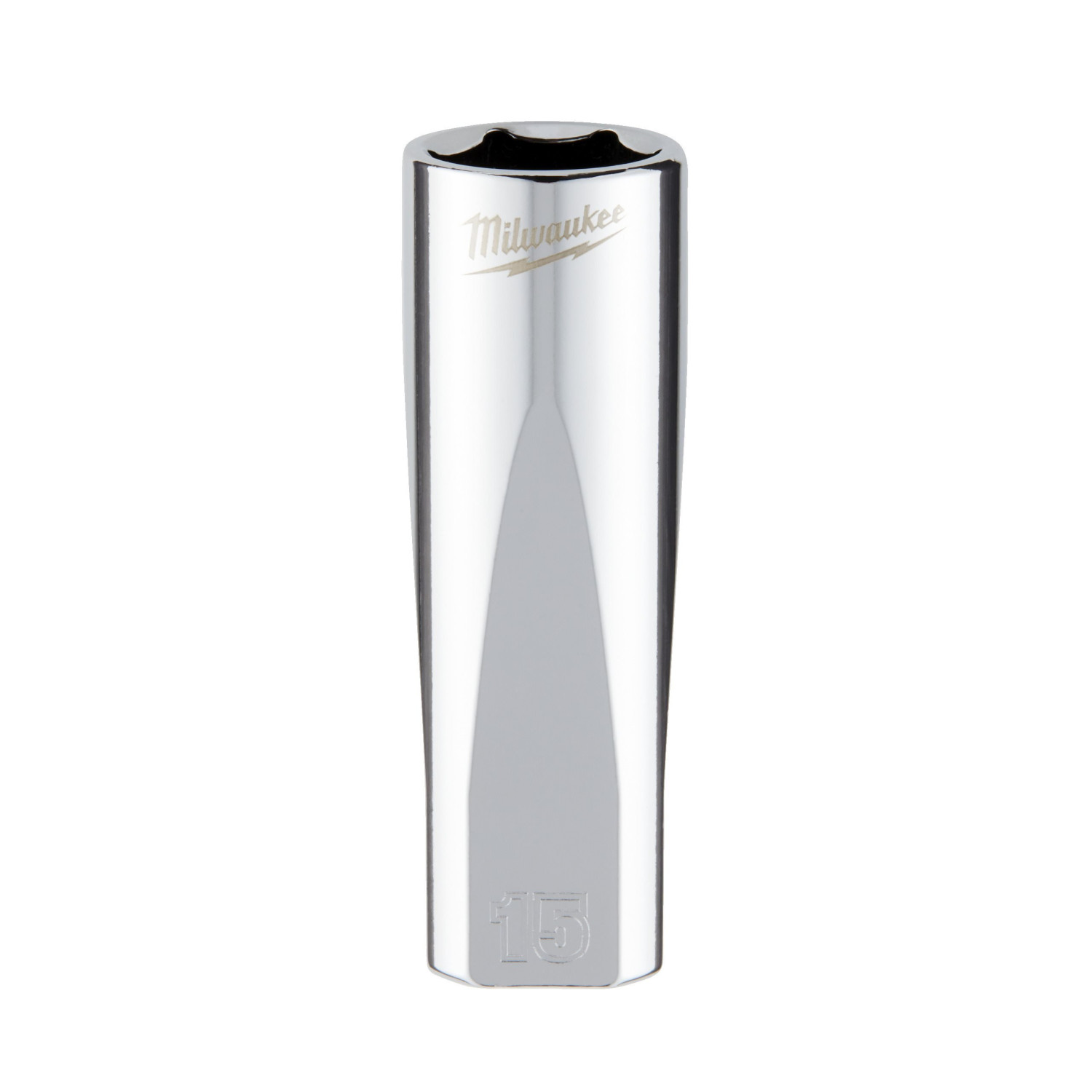 ⅜″HROMĒTI UZGRIEŽŅU SKRŪVĒŠANAS UZGAĻI AR ČETRIEM PLAKANIEM™ SĀNIEM, 3/8 DRIVE SOCKET - METRIC DEEP - 15 MM, 4932478359 MILWAUKEE