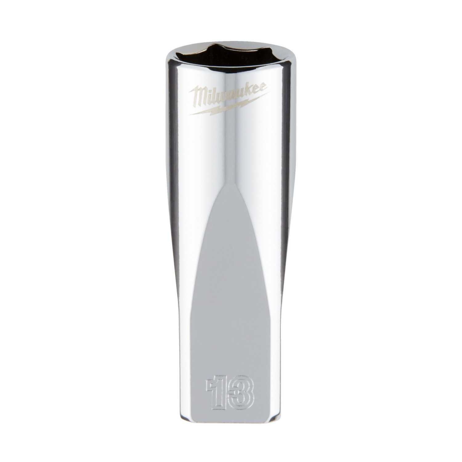 ¼″HROMĒTI UZGRIEŽŅU SKRŪVĒŠANAS UZGAĻI AR ČETRIEM PLAKANIEM™ SĀNIEM, 1/4 DRIVE SOCKET - METRIC DEEP - 13 MM, 4932478333 MILWAUKEE