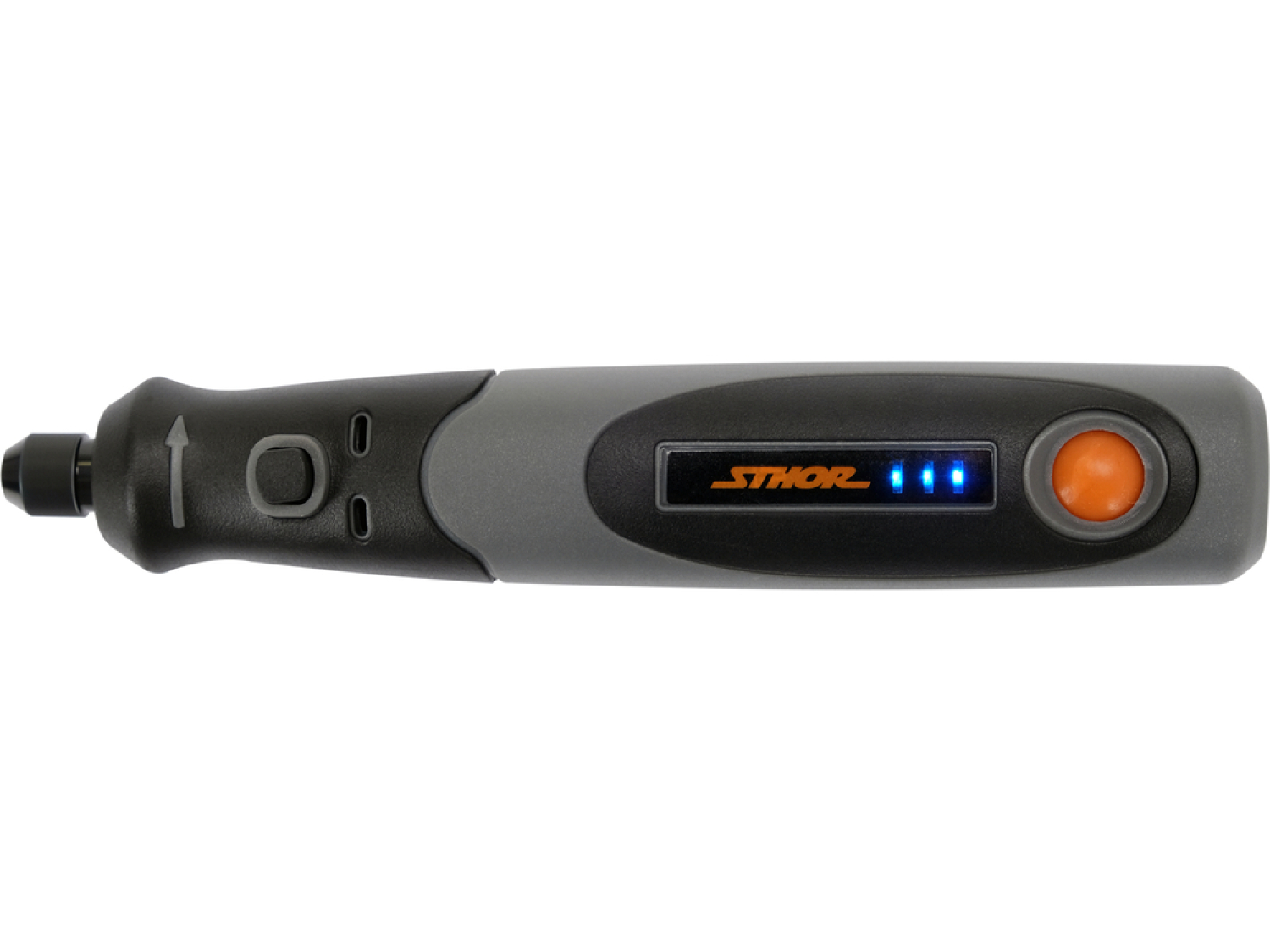 Bevielė mini šlifuoklė STHOR 3.6V yra praktiškas įrankis, skirtas gręžimui, šlifavimui, frezavimui, graviravimui, poliravimui ir valymui. Dėl 3.6 V Li-Ion pakraunamos energijos tiekimo su 600 mAh talpa, prietaisas užtikrina ilgą veikimo laiką. Greitas krovimas per 2 valandas naudojant USB-C įkroviklį. Mini šlifuoklė turi tris greičio nustatymus, nuo 5000 iki 15000 aps/min, leidžiančius pritaikyti greitį pagal užduotį.