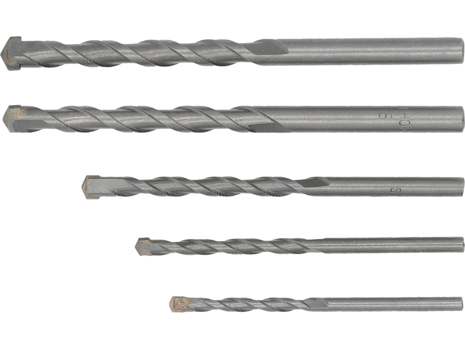 STHOR 23331 mūro gręžimo grąžtų rinkinys yra puikus pasirinkimas profesionalams ir mėgėjams, norintiems efektyviai gręžti betoną, silikatus ir plytas. Rinkinį sudaro penki skirtingi grąžtai, kurių skersmuo: 4 mm, 5 mm, 6 mm, 8 mm ir 10 mm, užtikrinantys universalumą ir patogumą atliekant įvairius darbus.