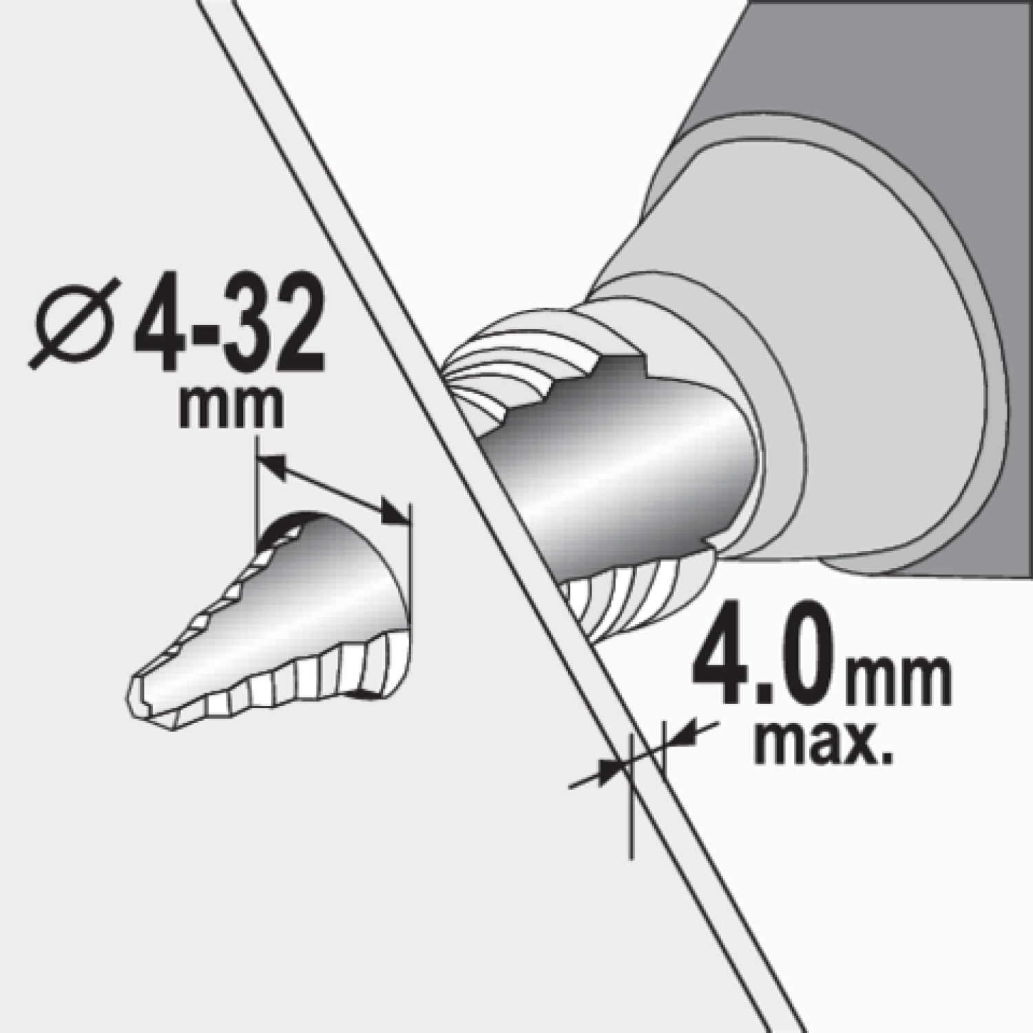 Šis įrankis yra sukurtas gręžti aukštos kokybės nerūdijančiame pliene, struktūrinėje ir šaltai valcijoje plieno, nefermerantiniuose metaluose, plieno lakštuose ir plastikiniuose gaminiuose.