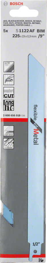 5 zobenzāģa asmeņi S 1122 AF, Zobenzāģiem ZOBENZĀĢA ASMENS S 1122 AF FLEXIBLE FOR METAL, 2608656018, BOSCH