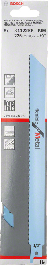 5 zobenzāģa asmeņi S 1122 EF, Zobenzāģiem ZOBENZĀĢA ASMENS S 1122 EF FLEXIBLE FOR METAL, 2608656020, BOSCH
