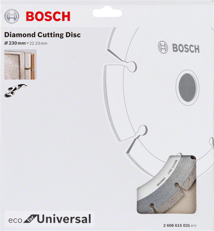 Dim. griešanas disks Universal 230x22.23x2.6x7, Lielām leņķa slīpmašīnām ar fiksācijas uzgriezni ECO FOR UNIVERSAL SEGMENTĒTAIS DIMANTA GRIEZĒJDISKS, 2608615031, BOSCH