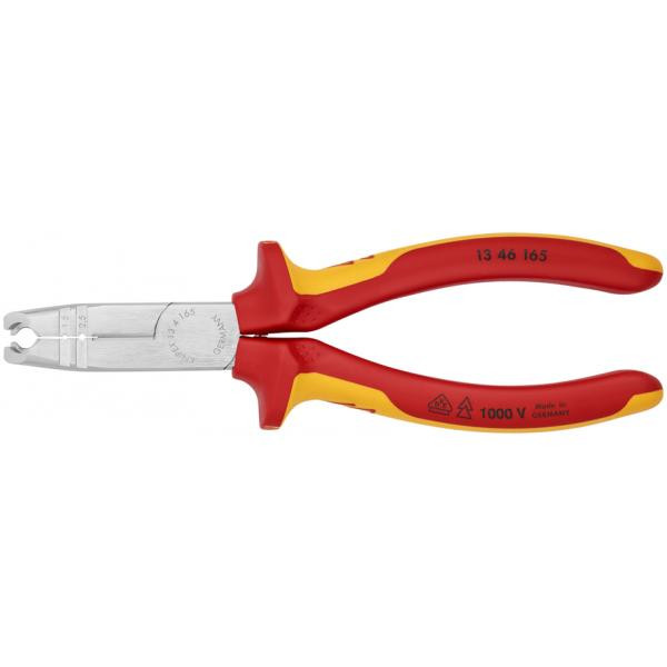 Izolētas noņemšanas knaibles, Knipex, 13 46 165 SB, 165 mm, VDE testētas, hromētas, ar daudzkomponentu rokturiem, piemērotas 1.5 un 2.5 mm² vadiem.