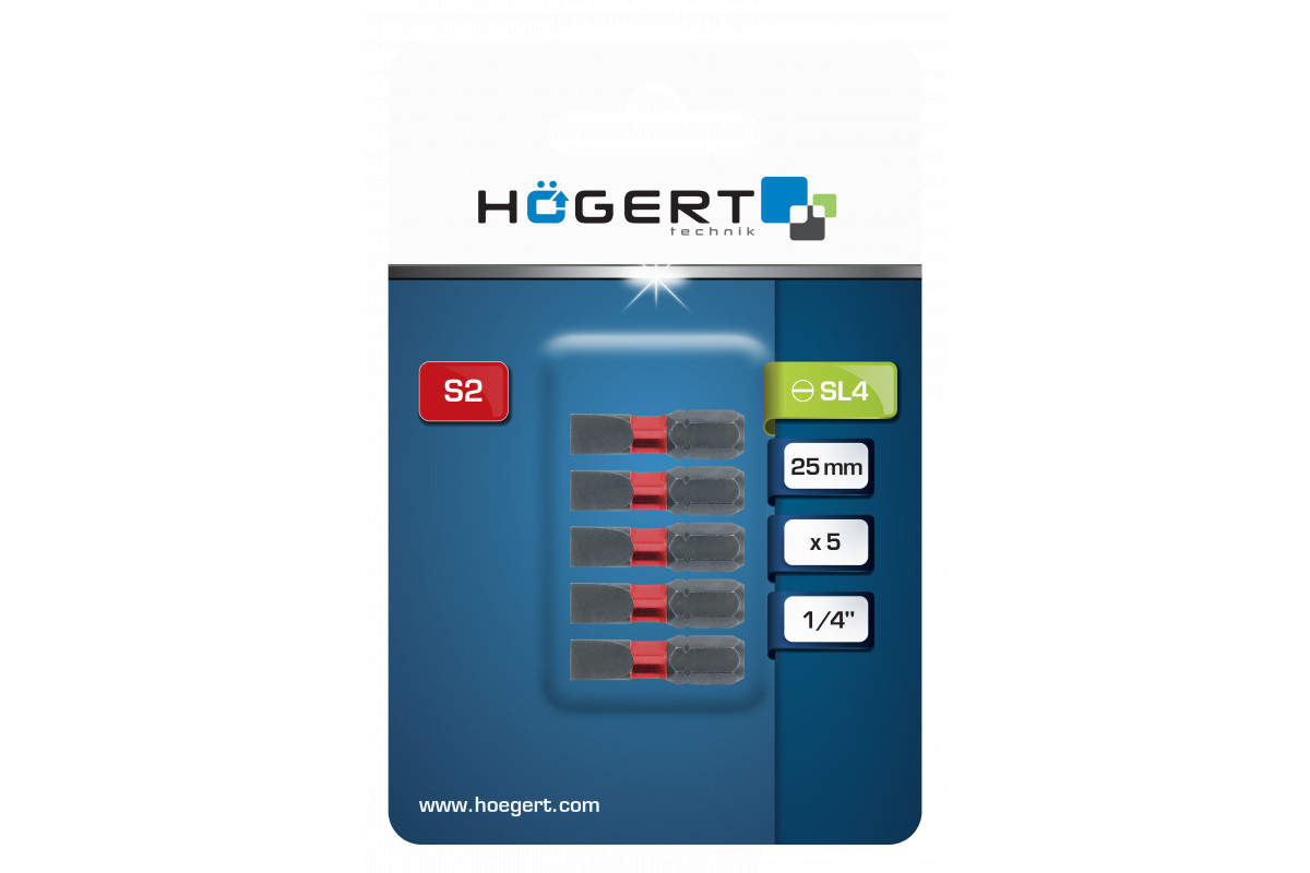 Skrūvgrieža uzgalis SL 4 25mm, augstas izturības S2 tērauds, 5 gab., HT1S130, HOGERT