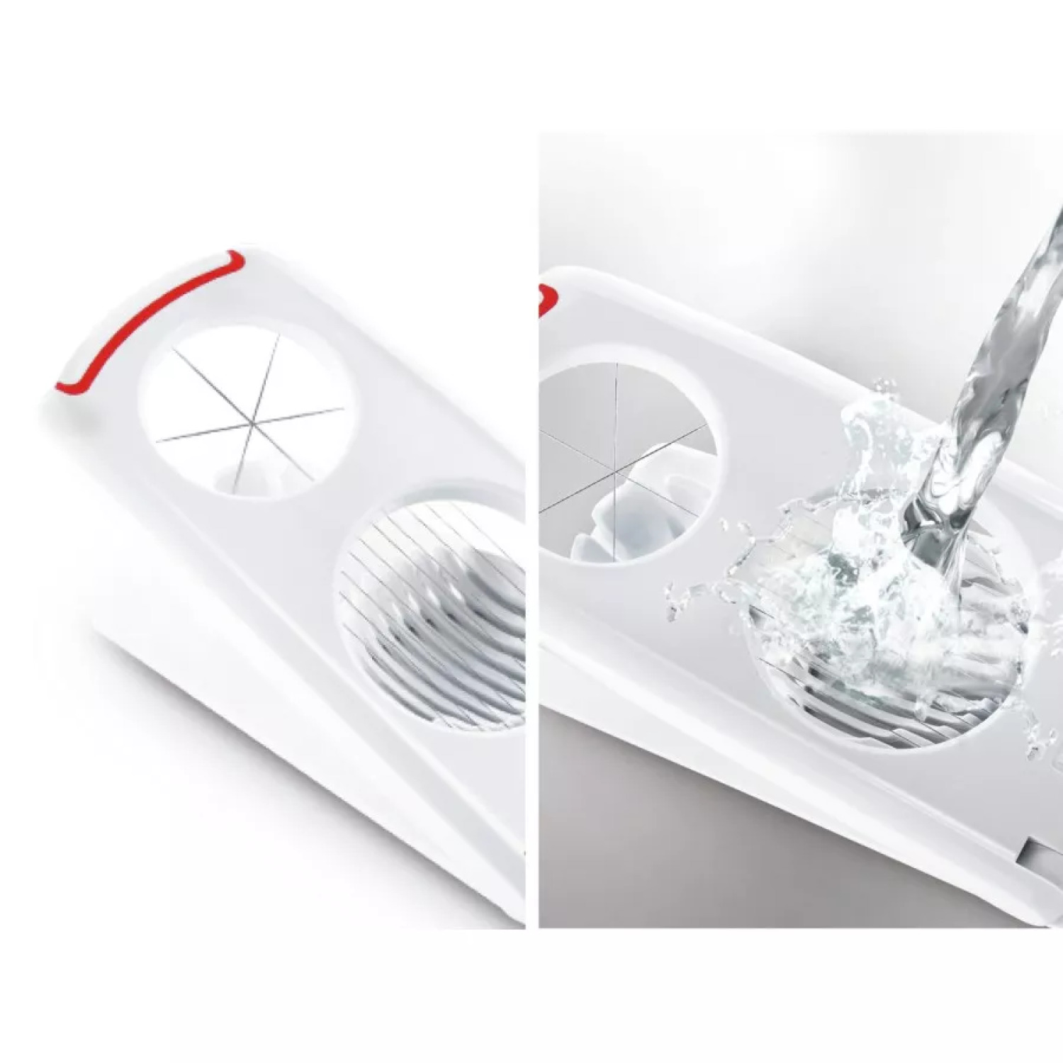 Šiame gaminyje sujungtos trys funkcijos viename: jis lengvai ir tiksliai pjausto kiaušinius, grybų, kivius ar virtas bulves jų lupenose. Visuose griežinėliuose užtikrinamas vienodas storis. Produktas yra lengvai valomas. Patvarus nerūdijančio plieno korpusas ir neslystančios detalės užtikrina malonų naudojimą ir ilgą tarnavimo laiką.