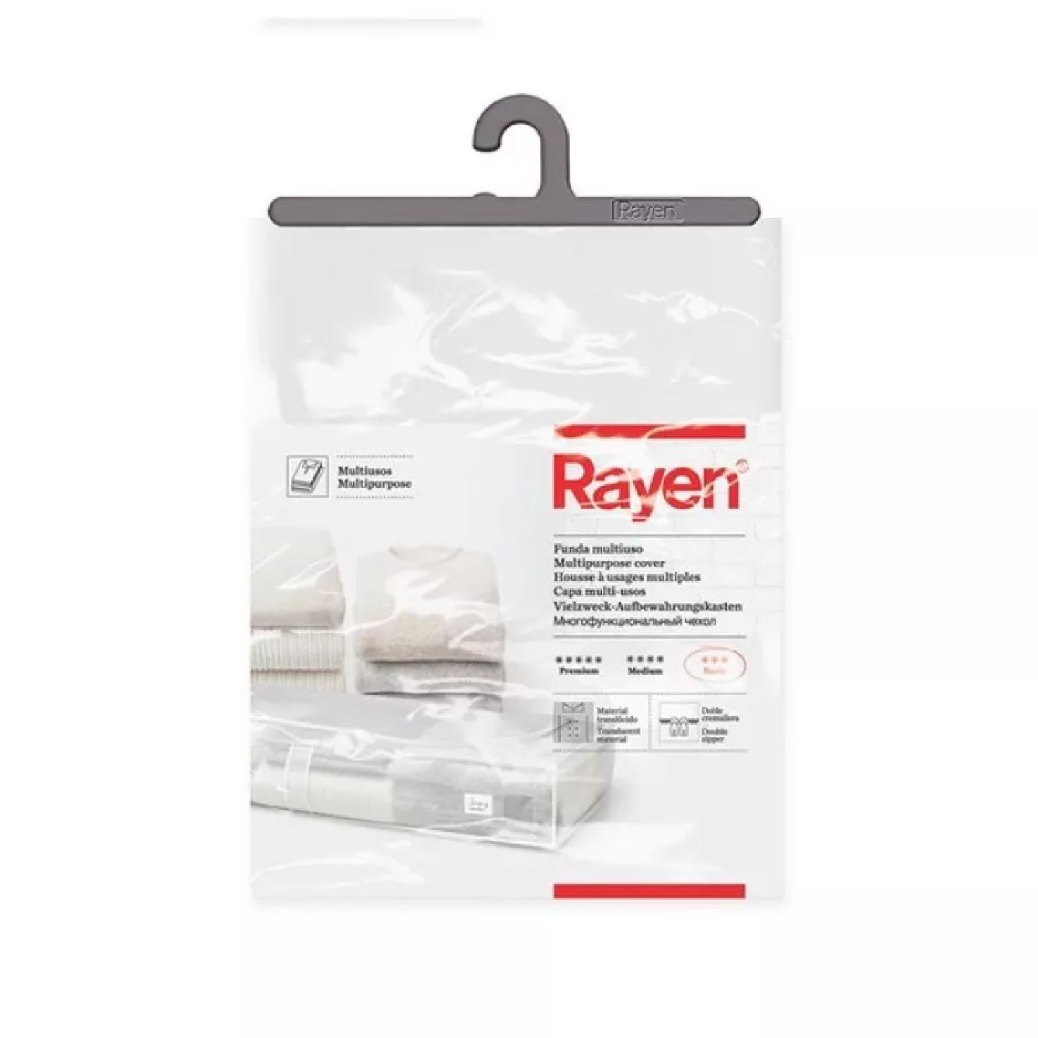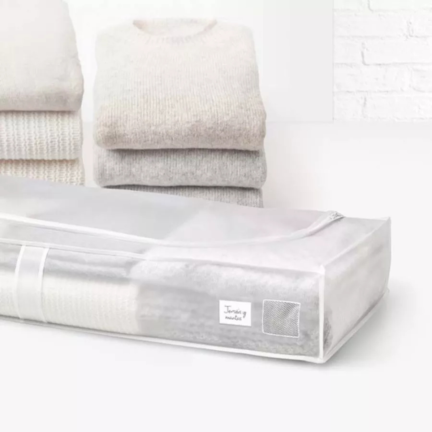Drabužių dėžė, pagaminta iš PVA skaidrios medžiagos, užsegama dvigubu užtrauktuku ir turi orui pralaidų tinklelio langelį. Ši dėžė puikiai tinka drabužių ir antklodžių laikymui, apsaugant juos nuo dulkių.