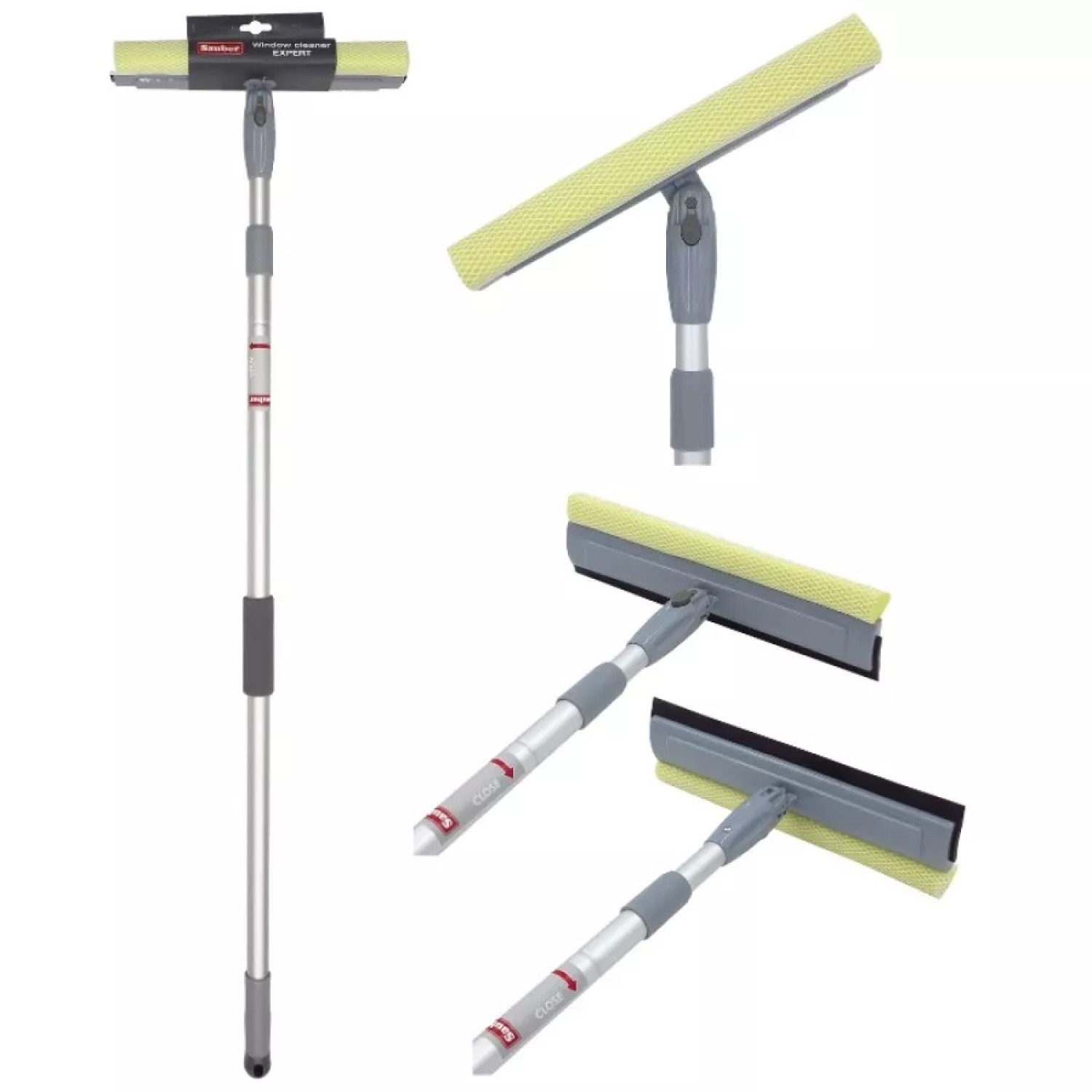 Langų šepetys Expert su teleskopine rankena yra puikus įrankis langų valymui. Šepetys turi 30 cm pločio galvą, o teleskopinė rankena išsiplečia iki 190 cm. Šepetys sukasi 45º kampu ir bet kurioje padėtyje užfiksuojamas paspaudus mygtuką. Šepečio kempinė turi apsauginį tinklelį, kuris užtikrina ilgalaikį ir efektyvų naudojimą. Su guminiu grandikliu langams valyti.