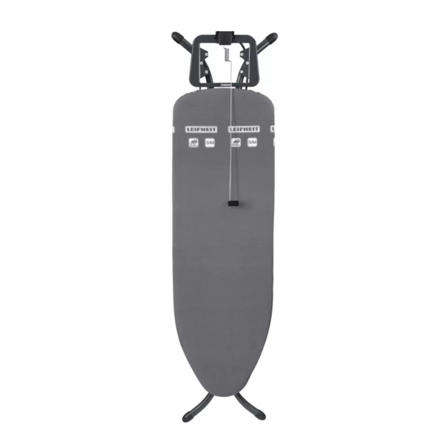 Efektyvus lyginimas, aukšta kokybė ir stilingas dizainas! Žymiai lengvesnė už įprastas lyginimo lentas ir turi unikalų lyginimo paviršių. Specialus korpusas su "Thermo Reflect" technologija sulaiko garus ir šilumą nuo lygintuvo ir neleidžia jiems išgaruoti per lyginimo paviršių. Dėl dvipusio lyginimo efekto jūsų skalbiniai lyginami iš abiejų pusių vienu metu. Lygintuvą "Air Board M Black Plus" lengva pastatyti ir nuimti, nes lyginimo paviršius pagamintas iš itin lengvo specialaus plastiko. Dėl to "Air Board M Black Plus" yra lengvesnė už bet kurią įprastą metalinę lyginimo lentą. Lyginimo paviršių palaiko idealiai stabilus rėmas, kuris gali stabilizuotis ir ant nelygių grindų. Lyginimo lentos aukštį galima reguliuoti ir pakelti iki didžiausio 98 cm darbinio aukščio. Joje yra fiksuota lygintuvo atrama, lizdas ir kabelio laikiklis, kad būtų lengviau lyginti. Dėl "Thermo Reflect" technologijos ši lyginimo lenta idealiai tinka naudoti su standartiniais lygintuvais ir gariniais lygintuvais.