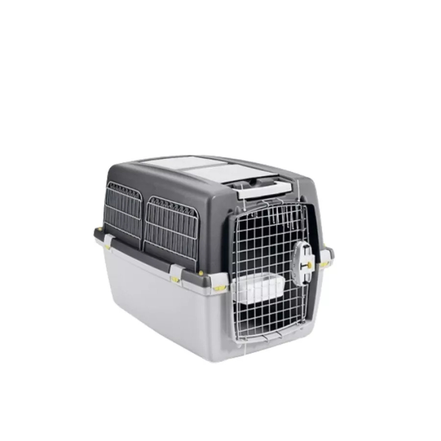 Praktiškas transportavimo narvas su antislėginėmis juostelėmis ir durelėmis su užraktu saugiam augintinio transportavimui. Pagaminta pagal IATA taisykles. Galimas papildomas 4 ratų komplektas.