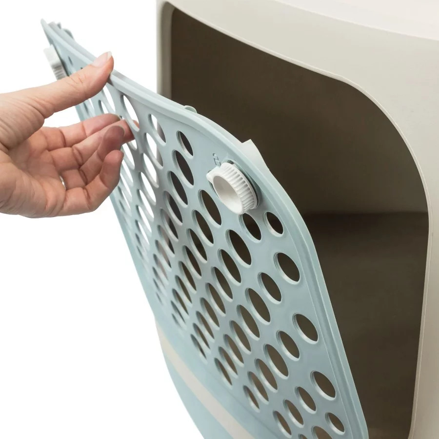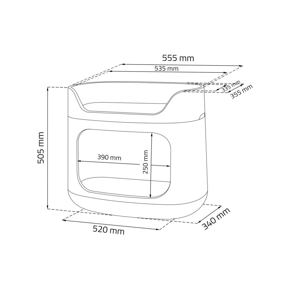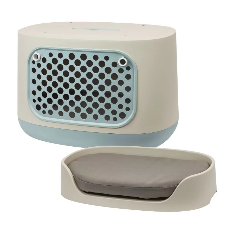 Dėžė augintiniams, tiek transportavimui, tiek miegui. Du viename. Dėžutės išorė plastikinė, lova iš audinio su paminkštinimu, kad gyvūnui būtų patogu ir patogu. Nuėmus viršutinę miegamąją vietą, uždėjus groteles ant angos ir už rankenos, galėsite neštis patogią ir daugiafunkcę dėžutę.