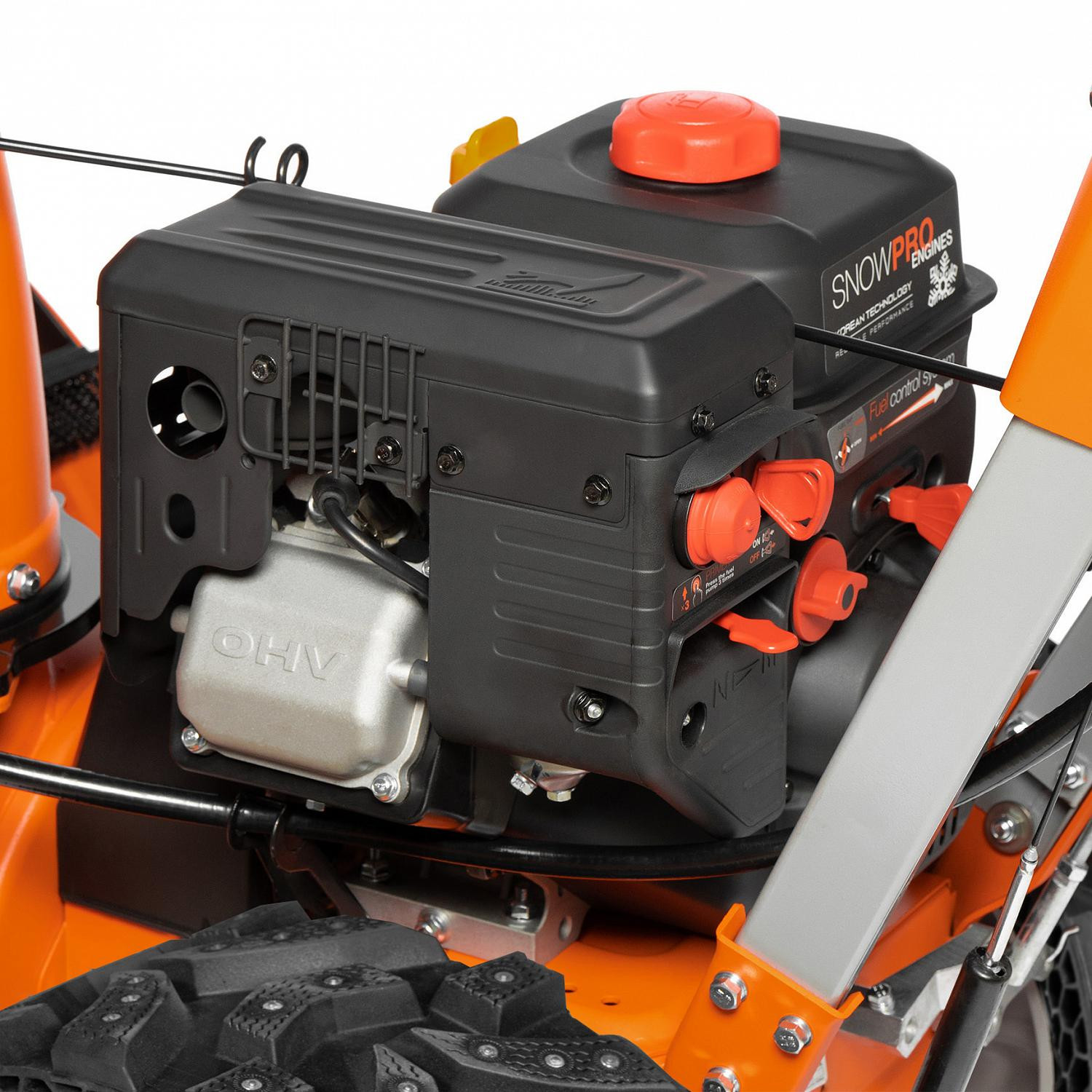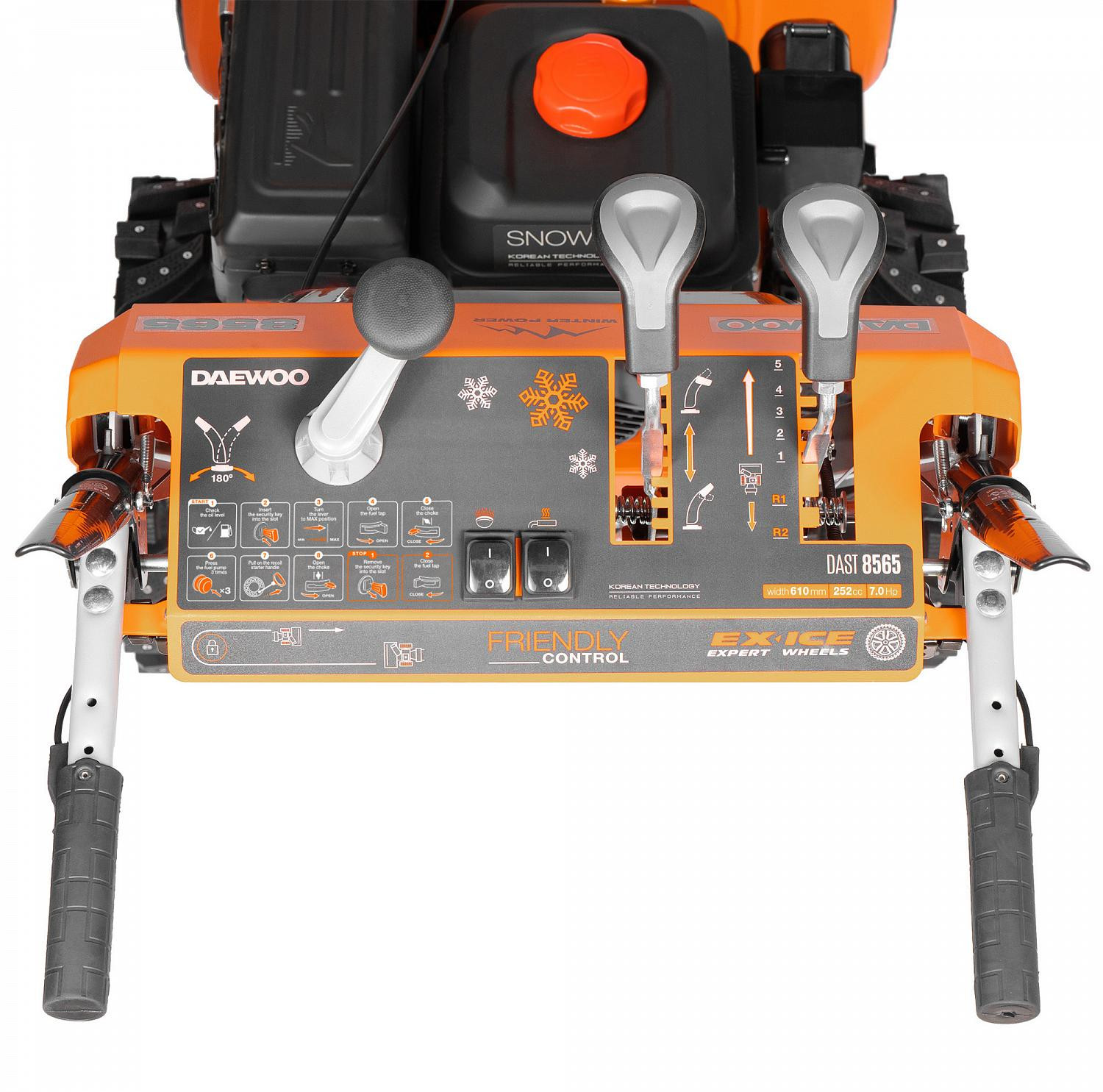 Valdymo skydelis su judėjimo greičio, krypties ir sniego išmetimo nuotolio keitimo sistema užtikrina patogų sniego valytuvo valdymą ir darbą su juo.